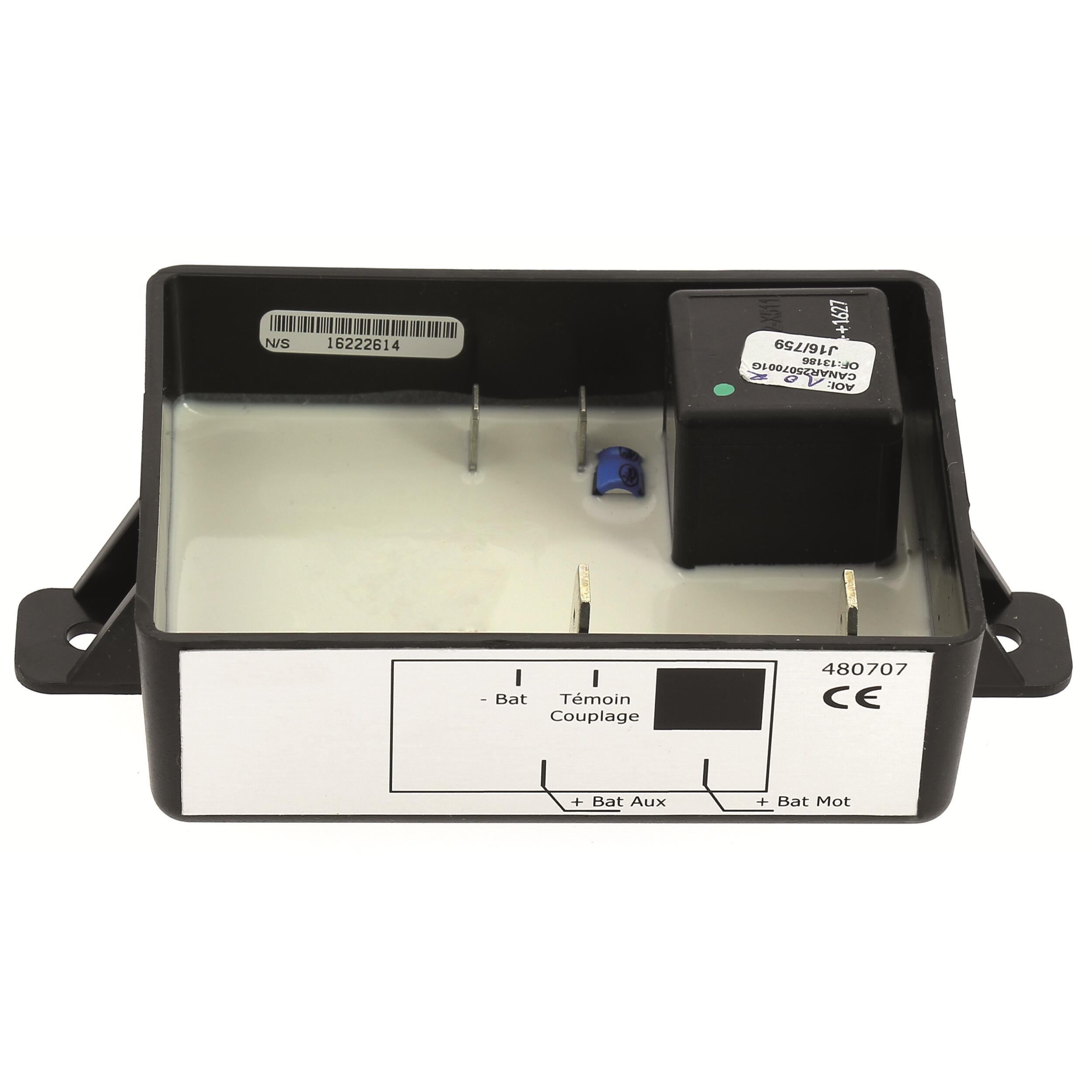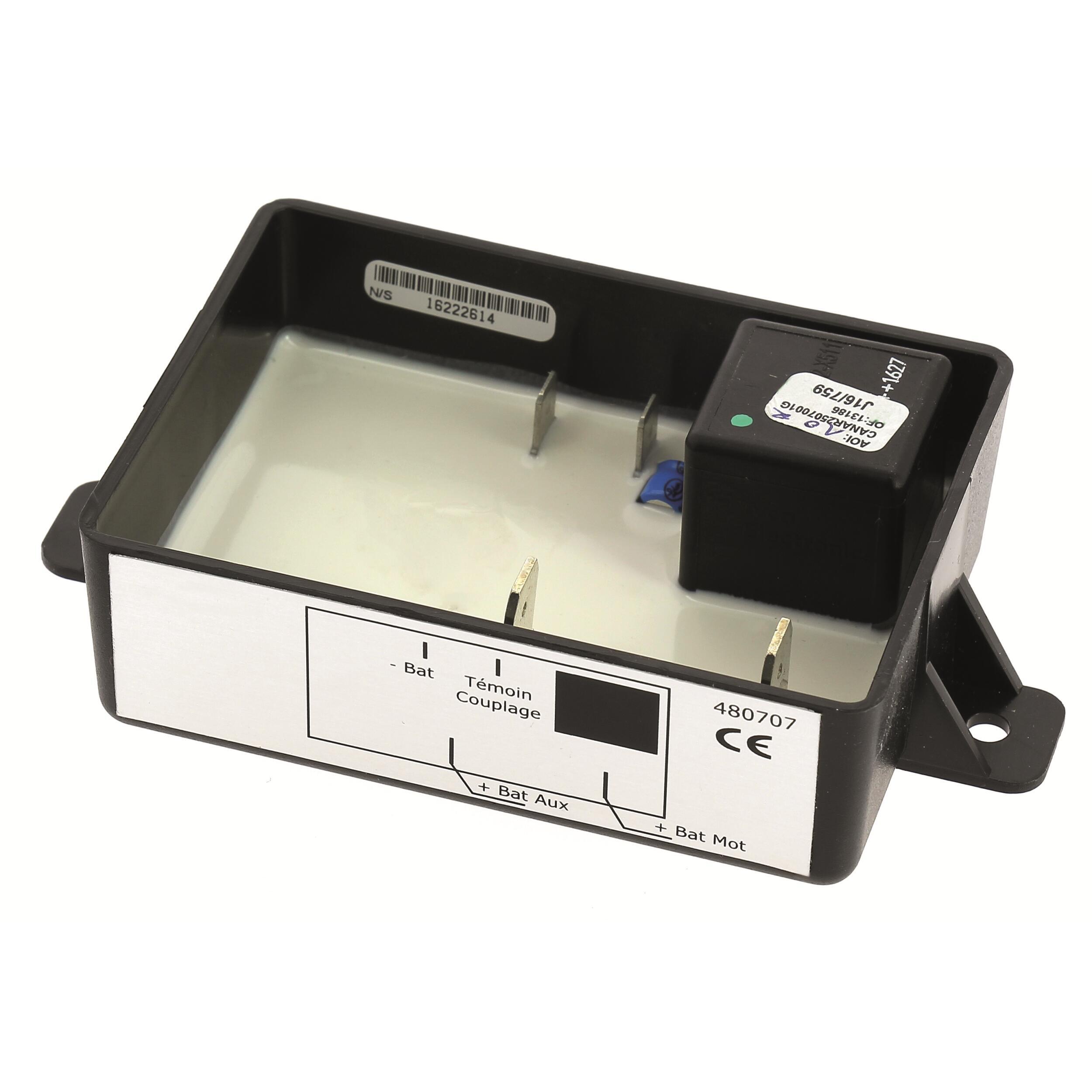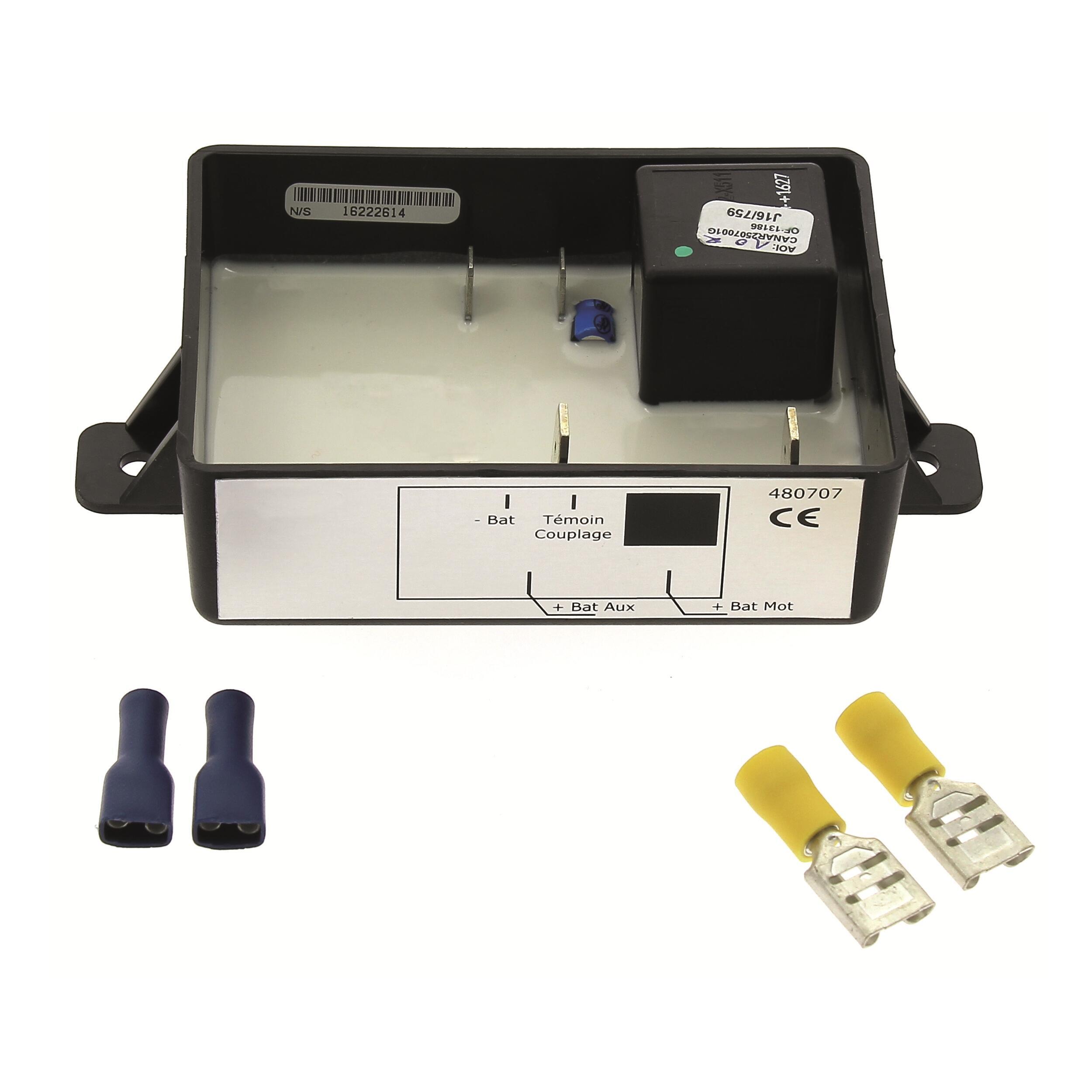 Le coupleur séparateur de batterie permet de mettre en parallèle votre batterie de démarrage (batterie moteur) et vos batteries auxiliaires. Il connecte et déconnecte automatiquement les batteries installées en parallèle selon des seuils de tension prédéfinis. Il assure à la batterie moteur de ne jamais se décharger complètement pour que vous puissiez redémarrer sans problème. Il préserve vos batteries d'une décharge complète qui pourrait les endommager. Le coupleur séparateur assure la charge de toutes les batteries en donnant la priorité à la batterie moteur et dès lors que la batterie moteur passe au-dessus de 13,5 volts, toutes les batteries sont chargées simultanément. Le courant de charge maximum est de 70 ampères. Convient pour des batteries de capacité individuelle jusqu'à 300 Ampères.