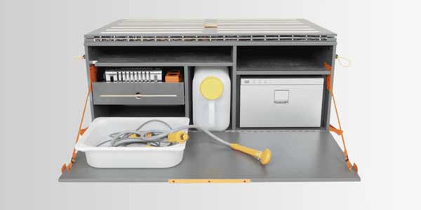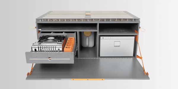 La gastronomie fait partie intégrante de l'aventure. La Bebox transforme ce principe en réalité avec sa cuisine mobile. Dotée d'un réchaud à gaz, d'un espace pour un jerrycan d'eau, et même d'une douchette extérieure, elle vous permet de préparer des repas savoureux en pleine nature.