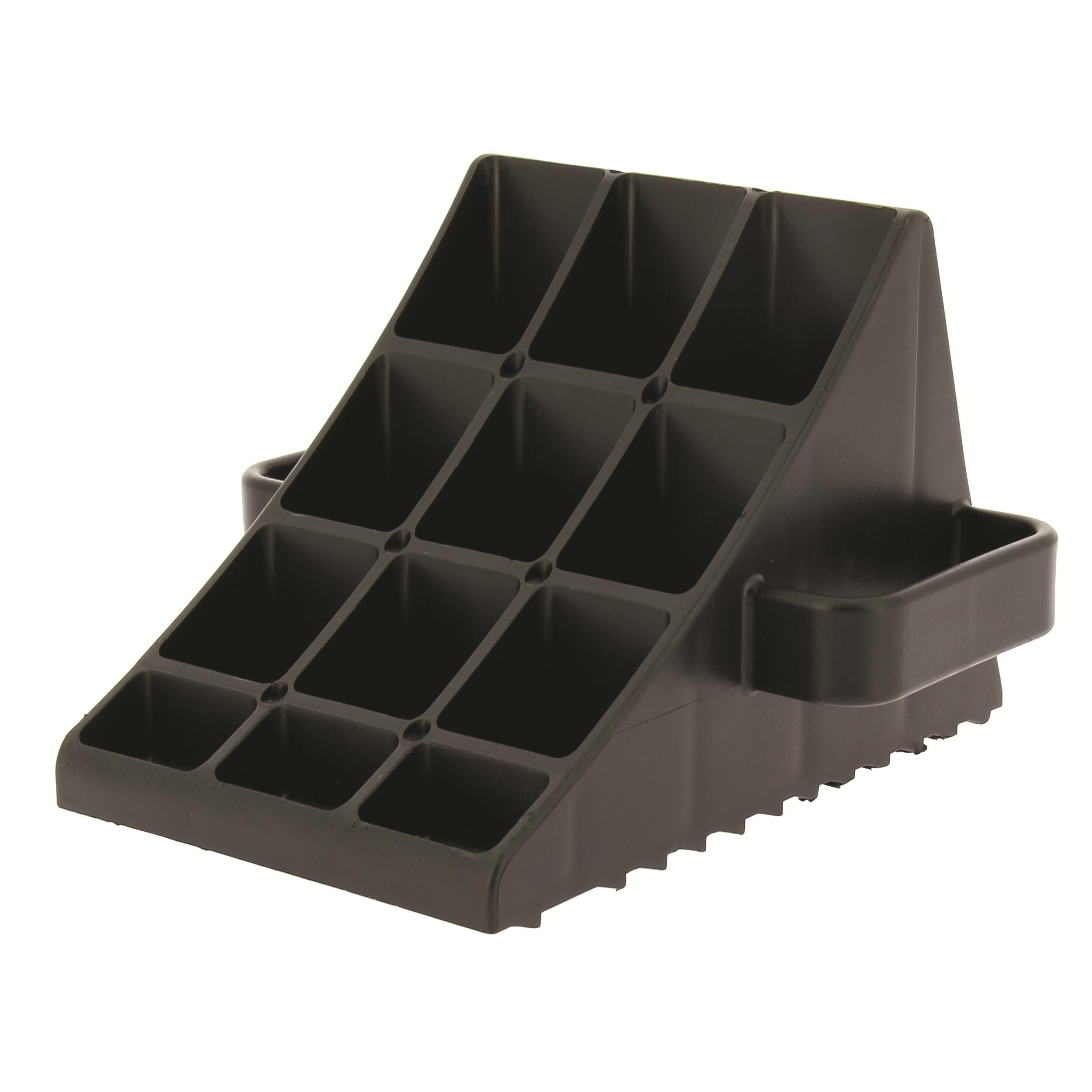 La contre cale Wedge Level convient pour des véhicules de loisirs pesant maximum 4 tonnes (camping-car, caravane, fourgon aménagé, van…). Elle est spécialement conçue pour les véhicules lourds et les pneus larges. En installant votre camping-car sur les cales Wedge Level (à commander séparément), il sera mis à niveau et bloquer avec la contre cale. En effet, la contre cale va bloquer le pneu à la hauteur désirée et empêchera que le véhicule ne bascule. Grâce à la pente douce des cales, le véhicule est facile à monter dessus de manière progressive. Cette simplification de manœuvre favorise également un meilleur réglage en hauteur pour mettre à niveau le camping-car.