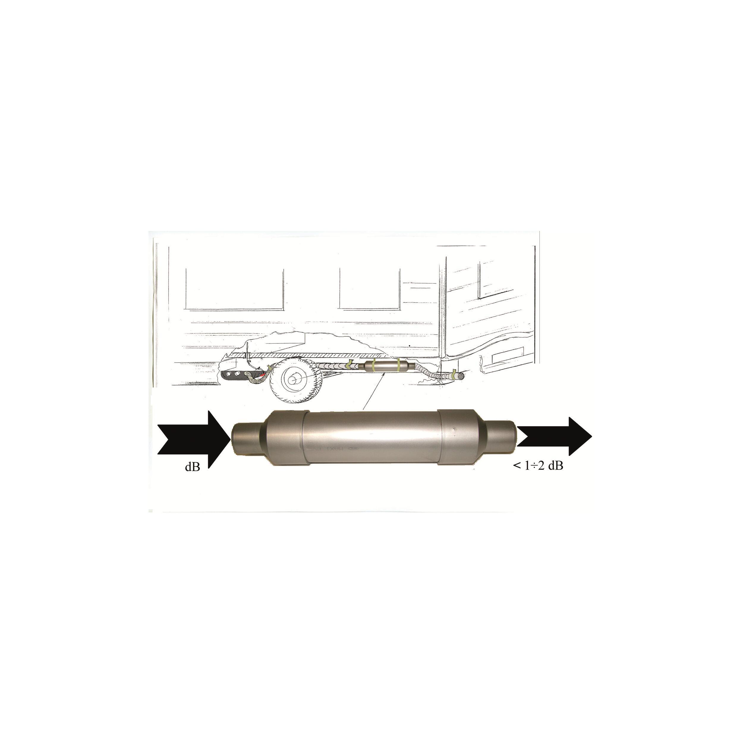 Jusqu'à -25 dB de bruit atténué. Dim. (Diam x L) : 95 x 490 mm.