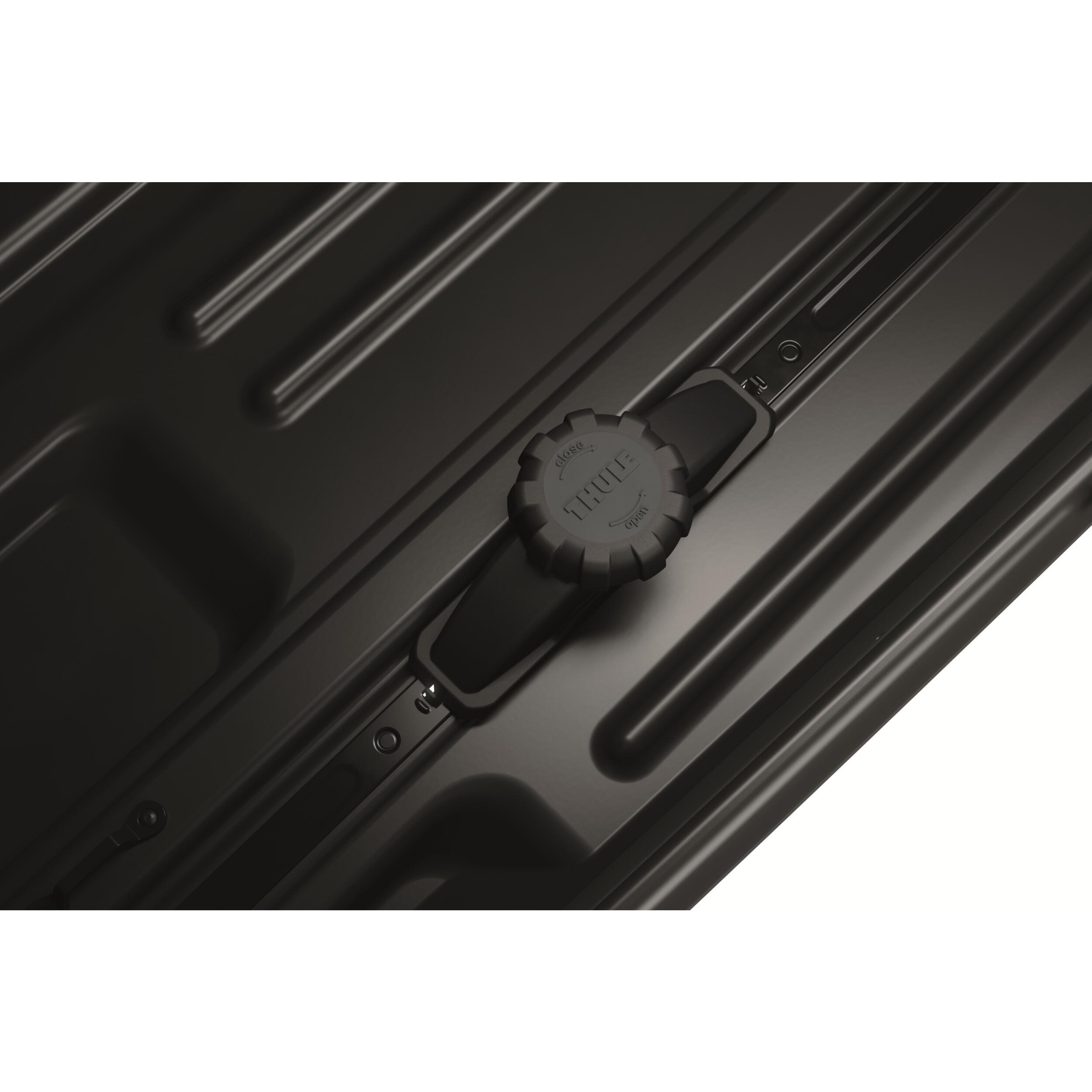 Ce coffre de toit fonctionnel répond à tous vos besoins de transport avec style, grâce à son couvercle finition aéroskin au design élégant.
