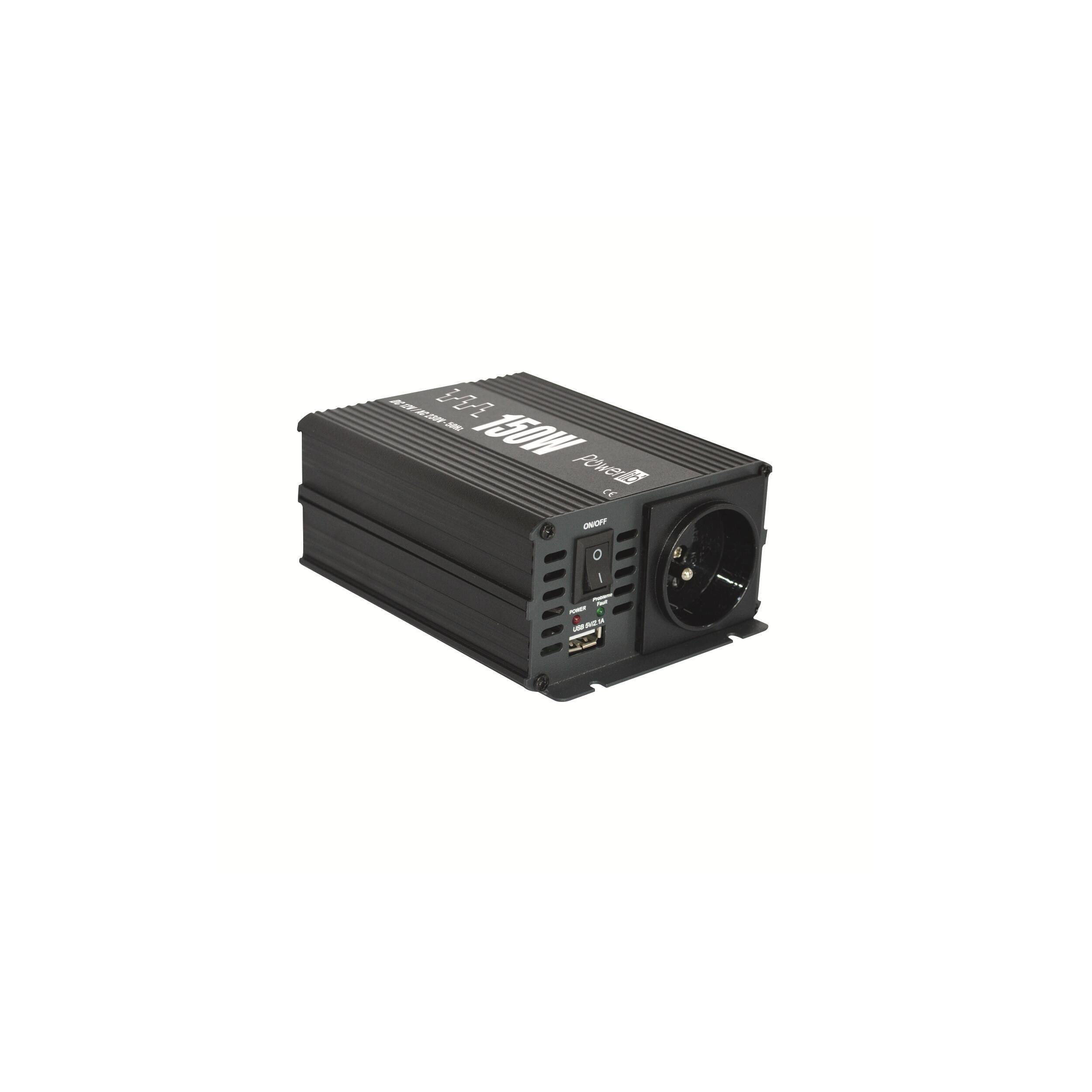 Convertisseur quasi-sinus 12V/230V pour camping-car. Les convertisseurs quasi-sinus Powerlib, vous permettront de brancher vos appareils domestiques basiques (résistifs) c’est-à-dire ne nécessitant pas un courant de charge inductif et de qualité pure, comme un ventilateur, un chauffage, une bouilloire, un fer à repasser basique, une cafetière, une plaque de cuisson, un four, un convecteur simple, une radio… La qualité du courant est inférieure à celle de votre courant domestique et ne conviendra pas pour les smartphone, ordinateur, tablettes...etc. pour lesquels il faudra choisir un convertisseur pure sinus. Le fonctionnement se fait en toute sécurité et en protection contre : les inversions de polarité, les courts circuits et la surchauffe. Inclus : Sécurité basse tension pour protéger les batteries contre les décharges profondes, câblage spécifique VDL et sortie USB sur l’ensemble de la gamme.