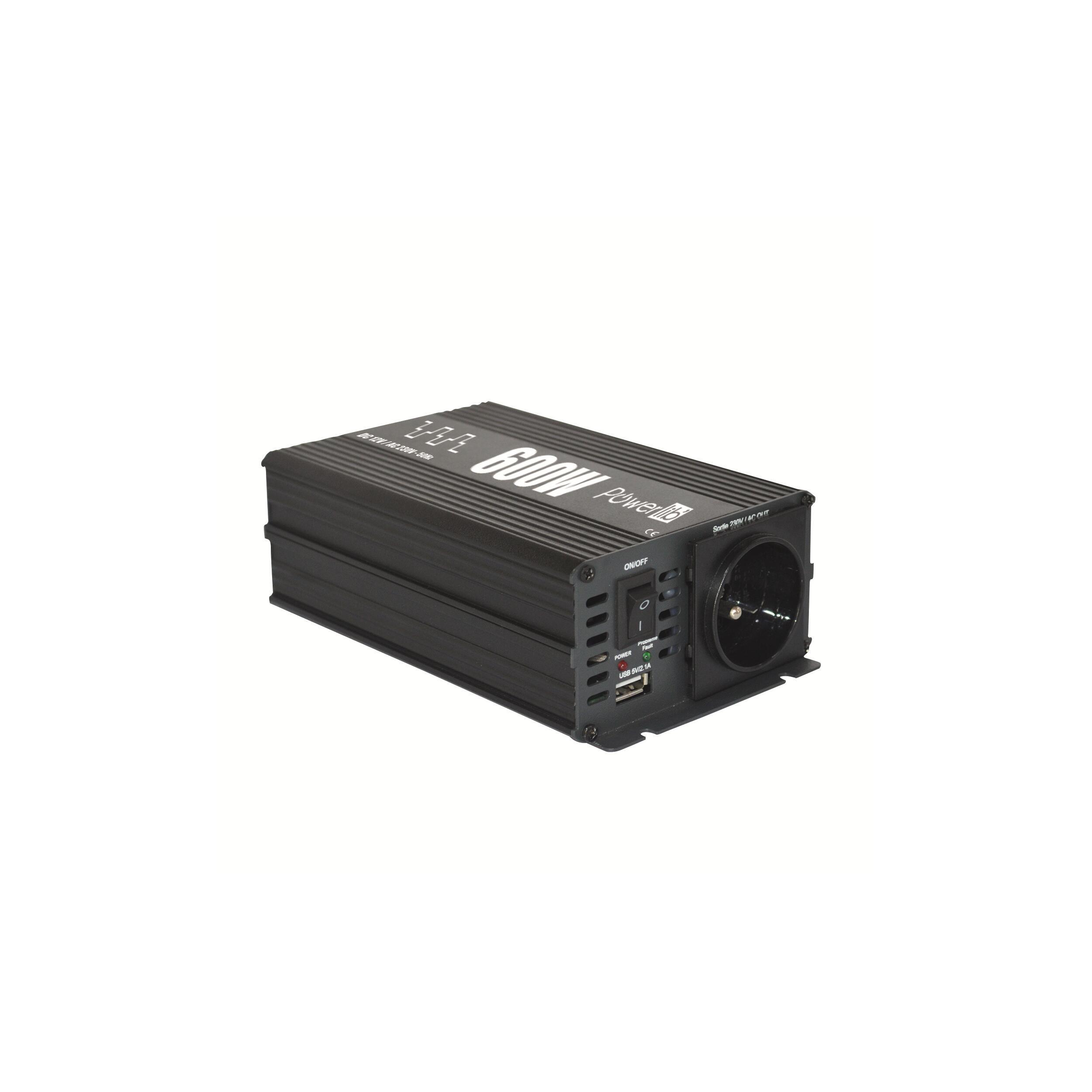 Convertisseur quasi-sinus 12V/230V pour camping-car. Les convertisseurs quasi-sinus Powerlib, vous permettront de brancher vos appareils domestiques basiques (résistifs) c’est-à-dire ne nécessitant pas un courant de charge inductif et de qualité pure, comme un ventilateur, un chauffage, une bouilloire, un fer à repasser basique, une cafetière, une plaque de cuisson, un four, un convecteur simple, une radio… La qualité du courant est inférieure à celle de votre courant domestique et ne conviendra pas pour les smartphone, ordinateur, tablettes...etc. pour lesquels il faudra choisir un convertisseur pure sinus. Le fonctionnement se fait en toute sécurité et en protection contre : les inversions de polarité, les courts circuits et la surchauffe. Inclus : Sécurité basse tension pour protéger les batteries contre les décharges profondes, câblage spécifique VDL et sortie USB sur l’ensemble de la gamme.