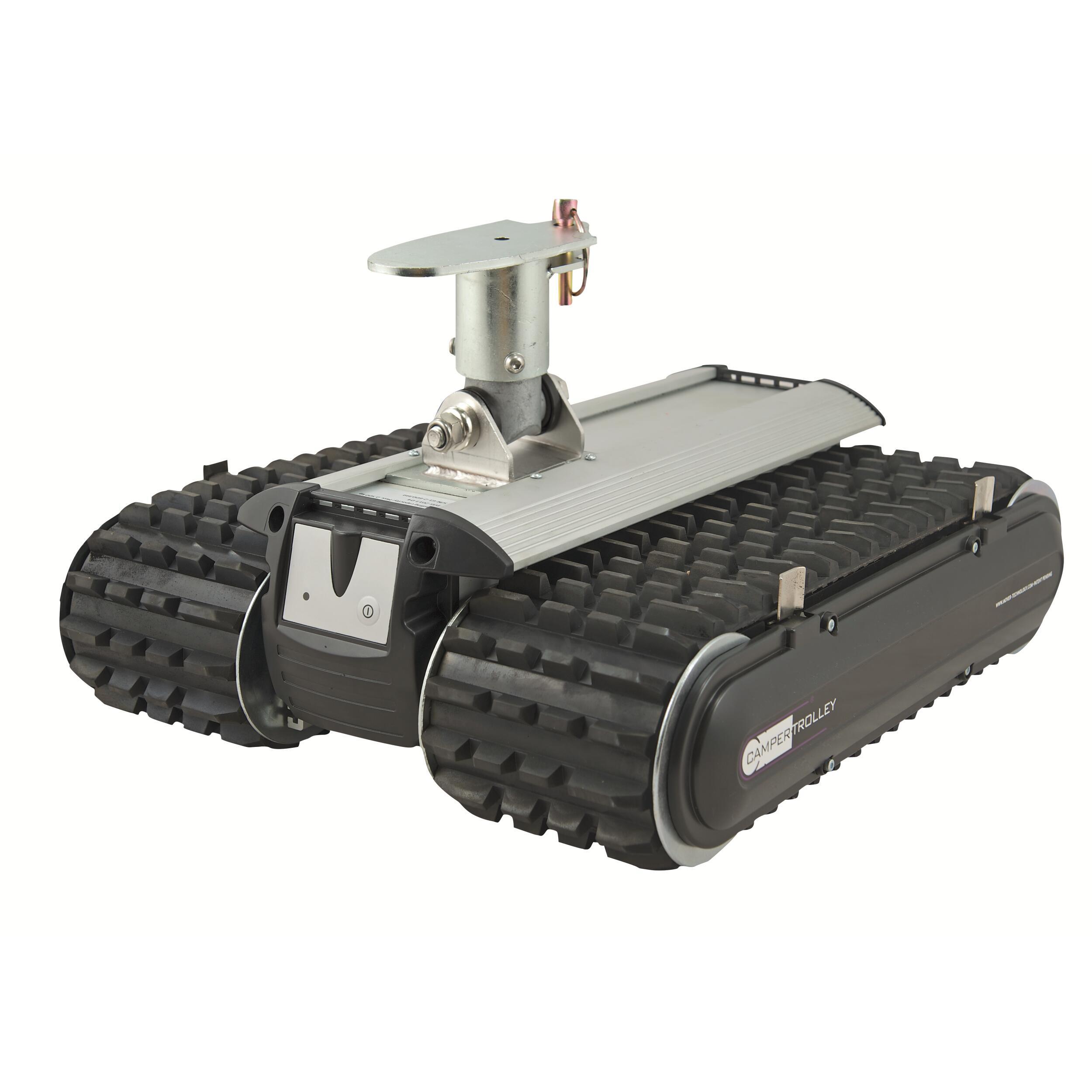Le Camper Trolley est un robot qui vous permettra d’assurer les manœuvres et le positionnement de votre caravane, de votre remorque, de votre van ou encore la mise à l'eau de votre bateau ; vous le ferez ainsi en toute sécurité et même dans des espaces restreints. Le Camper Trolley est propulsé à une vitesse de 9 mètres par minute par des moteurs à engrenages renforcés, il peut fonctionner sur la plupart des surfaces compactes grâce à ses chenilles en caoutchouc robuste. Le Camper trolley est alimenté par une batterie Lithium-Ion rechargeable. Pas d'installation complexe. Le système permet une installation simple : vous n’avez qu’à arrimer le support de fixation à la flèche, puis mettre en route votre Camper Trolley pour manœuvrer et déplacer votre véhicule. Le tout se fait simplement à l’aide de la télécommande de poche.