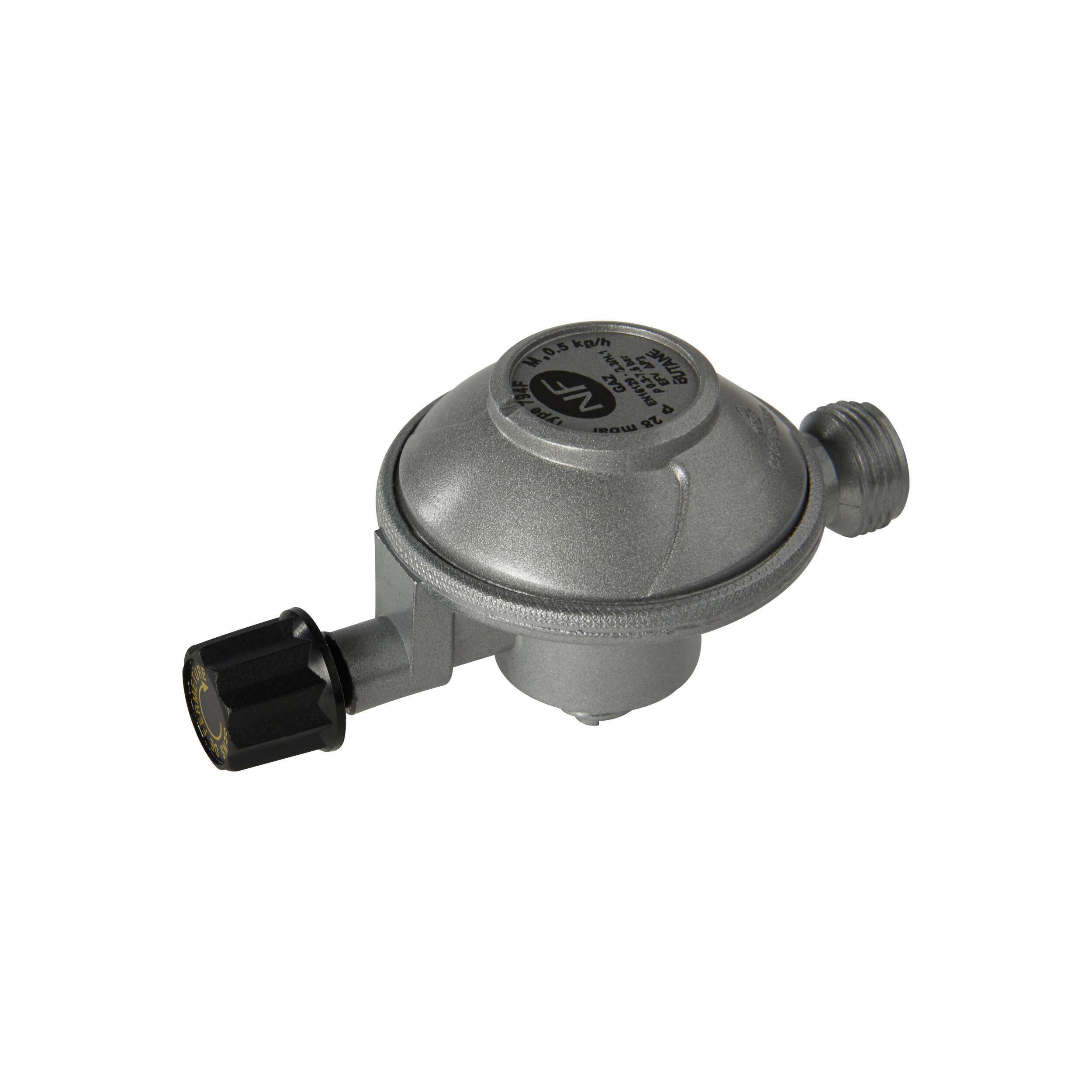 Le robinet détendeur se visse directement sur la bouteille de gaz butane. Il dispose d'un clapet anti-fuite.