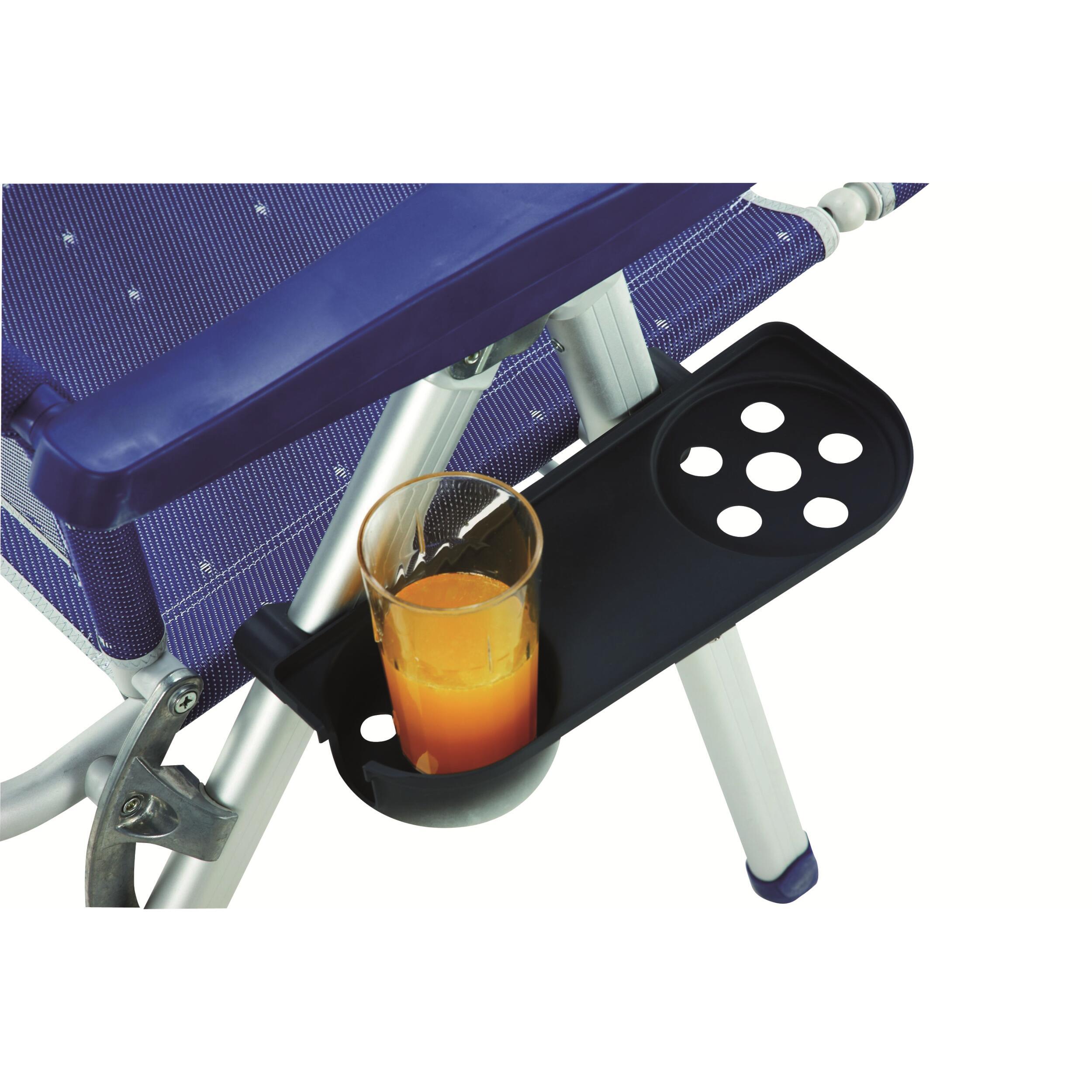 Très légère, il est simple de l'accrocher à votre fauteuil de camping. Détendez-vous pendant vos vacances sur un fauteuil de camping accompagné d'une boisson de votre choix grâce à la desserte !