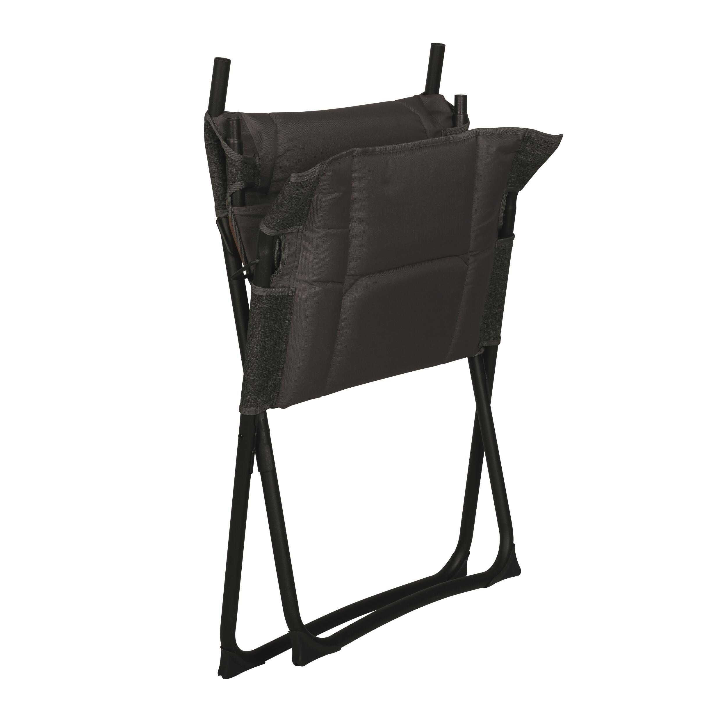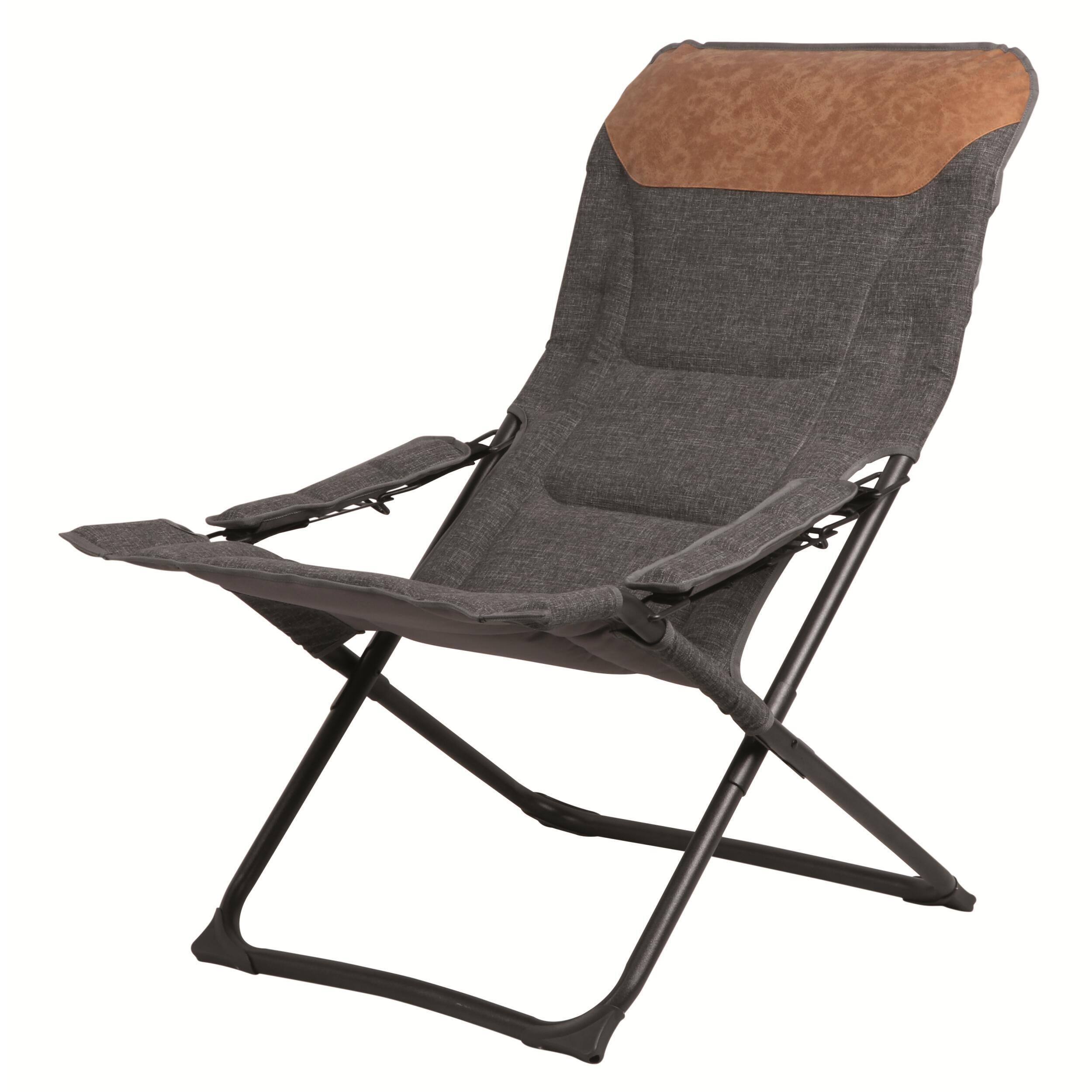 Fauteuil 3 positions Emma de Westfield. Ce fauteuil pliant et compact au style et aux couleurs Vintages, toile grise matelassée, extra-douce et appui tête en similicuir marron, sera parfait pour vous accompagner dans vos escapades camping. Le fauteuil Emma de Westfield permet de choisir entre 3 postions pour un confort et une détente optimale. Il est robuste grâce à son armature en aluminium et résistant grâce à sa toile polyester 600D de grande qualité qui est totalement imperméable, même face aux intempéries.