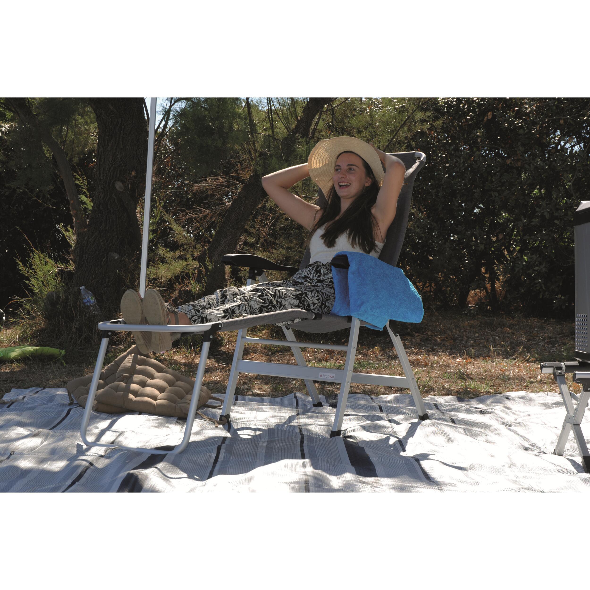 Le fauteuil pour camping de la marque Baya Sun est parfait pour se détendre au soleil et profiter de ses vacances en plein-air. Il convient pour toutes les activités extérieures lors de vos excursions en camping-car, caravane, bateau, fourgon aménagé etc…