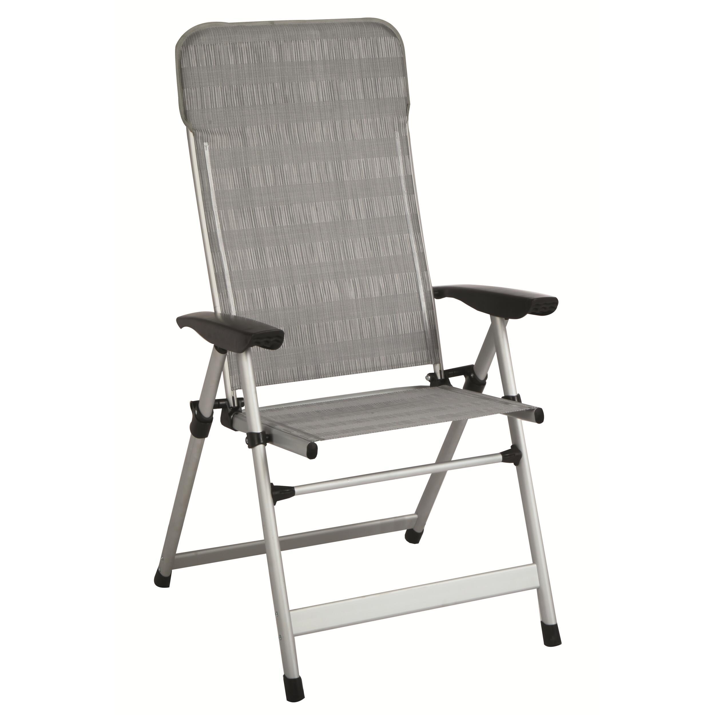 Fauteuil de camping Luxe avec assise haute. Ce fauteuil luxe ultra confortable à l'assise de haute qualité grâce à une ergonomie parfaite : 7 positions et un revêtement polyester sera le compagnon idéal pour la farniente, ou être confortablement installé à table ou pour toutes autres activités de camping. Son armature en aluminium lui permet d’être robuste et léger à la fois. Ce fauteuil haut de camping est facile à transporter : léger et encombrement minium, résistant : charge maximale de 120 Kg, facile à nettoyer : revêtement polyester.