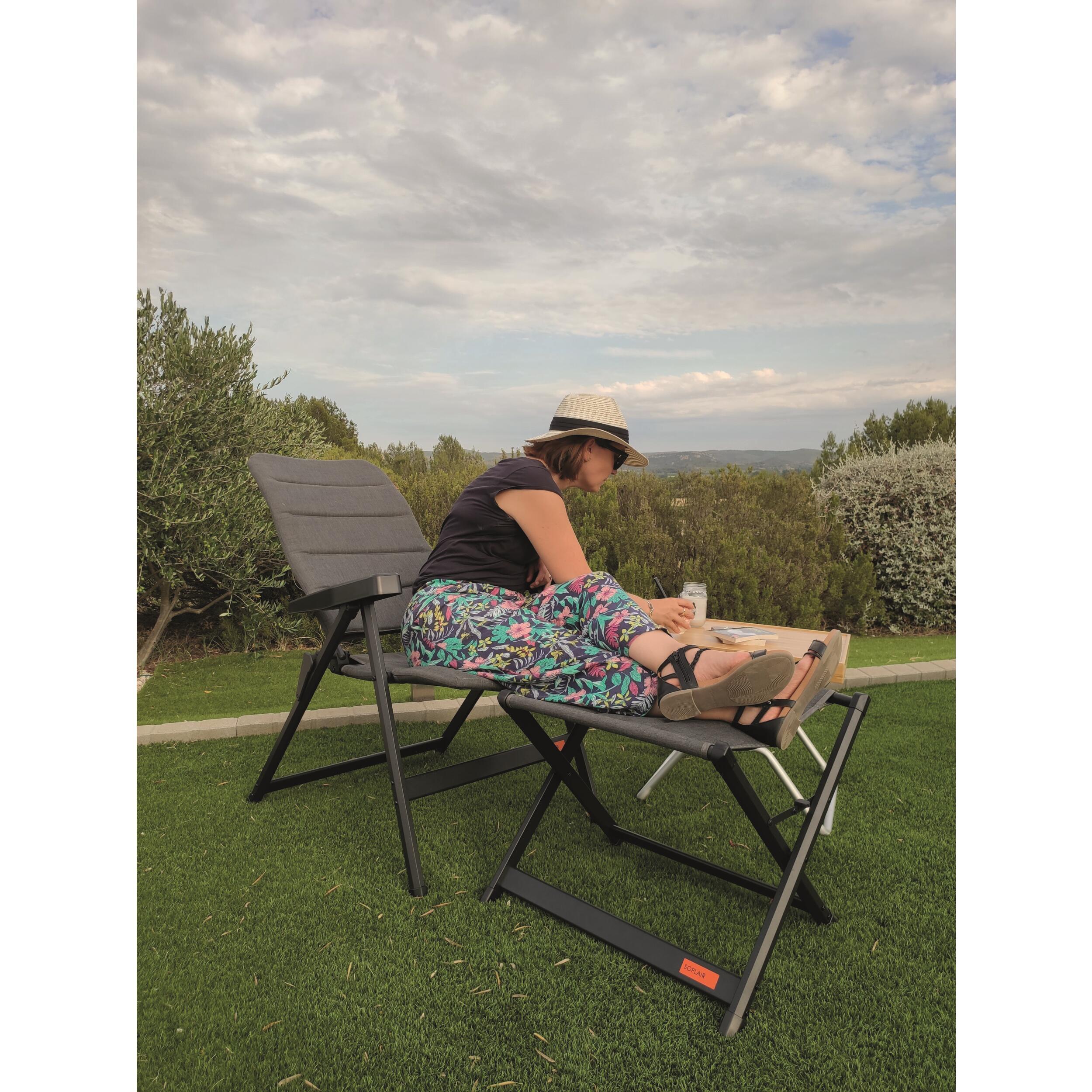 Le fauteuil de camping Soleo de la marque Soplair est tellement confortable! Ce sera parfait pour une séance de détente en vacances.