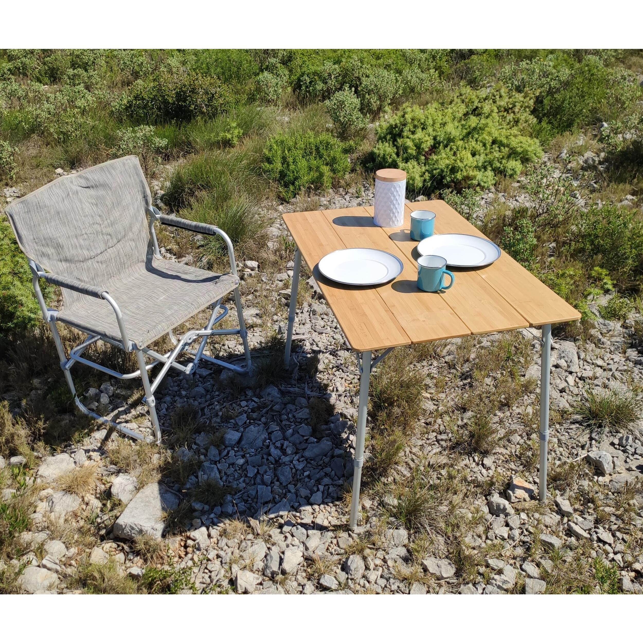Le fauteuil director Tiny est un fauteuil tout confort. Avec sa toile en textilène confortable, vous pouvez vous poser où vous le souhaitez et profiter du beau temps. Cette matière est respirante, ce qui permet de laisser circuler l'air. Avec ce fauteuil pour vanlifers, vous pouvez profiter de la vue du meilleur sport de votre voyage, vous reposer après une activité sportive, vous détendre ou toute autre activité outdoor qu'il vous plaira de faire. De belles journées et soirées en prévision !