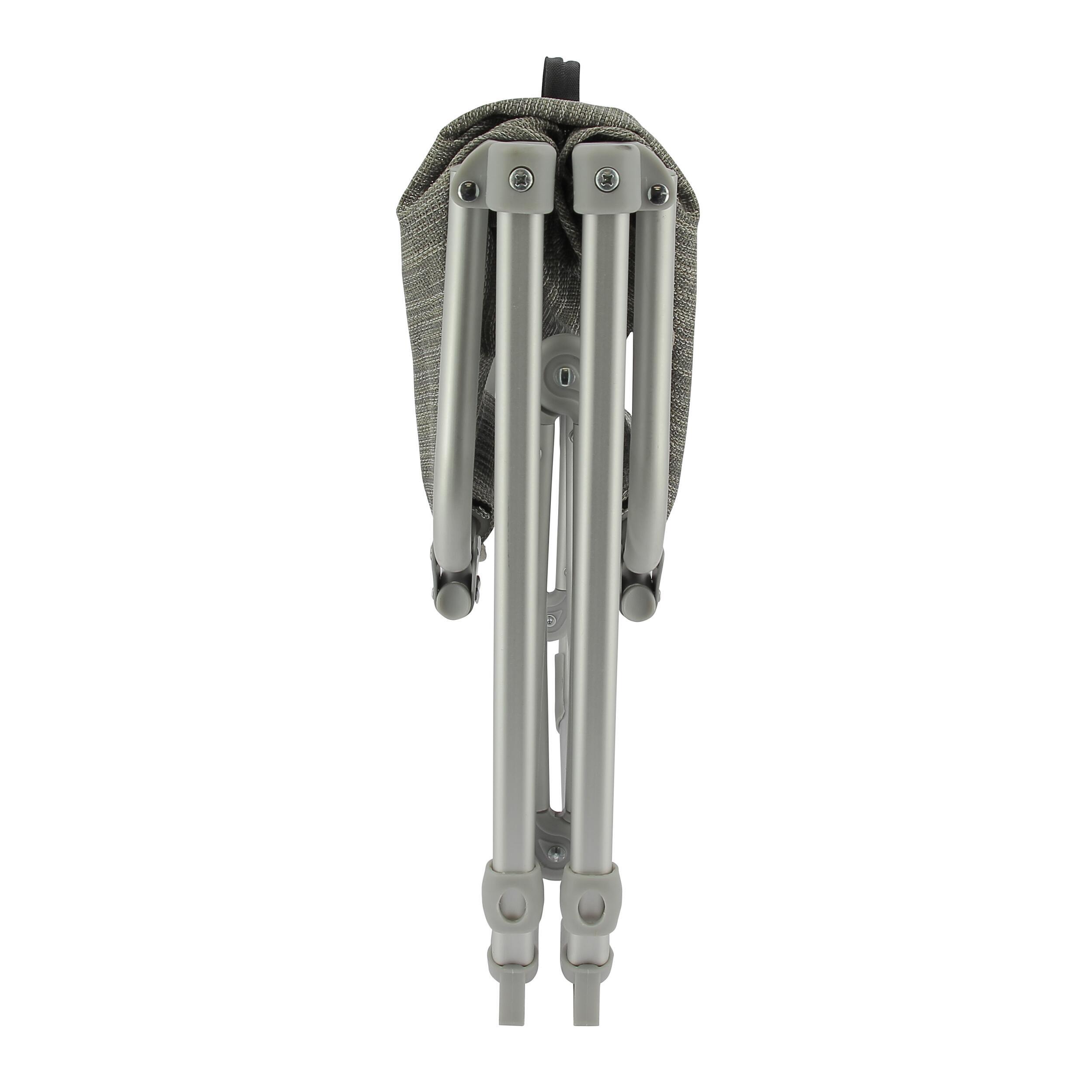 L'armature du fauteuil est aluminium afin qu'il soit léger et résistant à la fois. Il peut porter une charge max de 100 kg. De plus, doté d'accoudoirs, vous pouvez reposer sereinement dans le fauteuil.