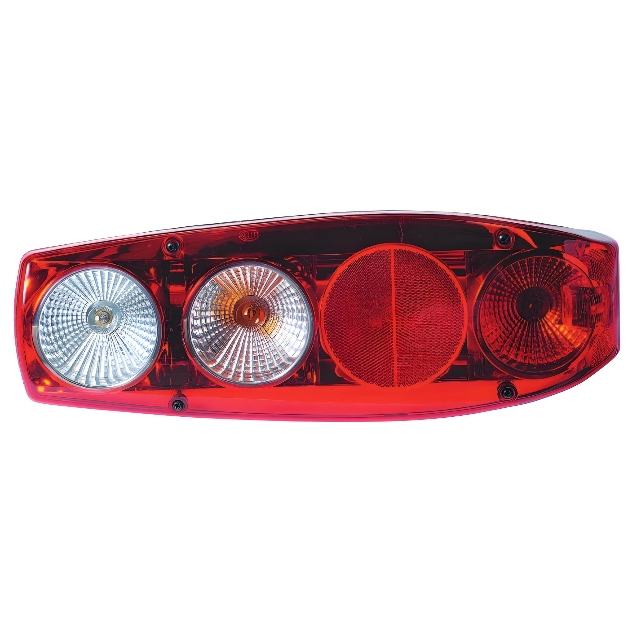 Feu signalisation arrière Caraluna II Hella camping-car. Ce modèle de feux arrière signé Hella s'adaptera parfaitement à l'emplacement dédié à l'arrière de votre camping-car, le montage est standard et universel. De série, l'éclairage est livré avec des ampoules incandescentes pour un fonctionnement immédiat. Cet éclairage est multifonction, il propose les fonctionnalités suivantes : clignotants, position, stop. Modèle avec catadioptre rond. Dimensions (LxHxP) : 505 x 176 x 96 mm.