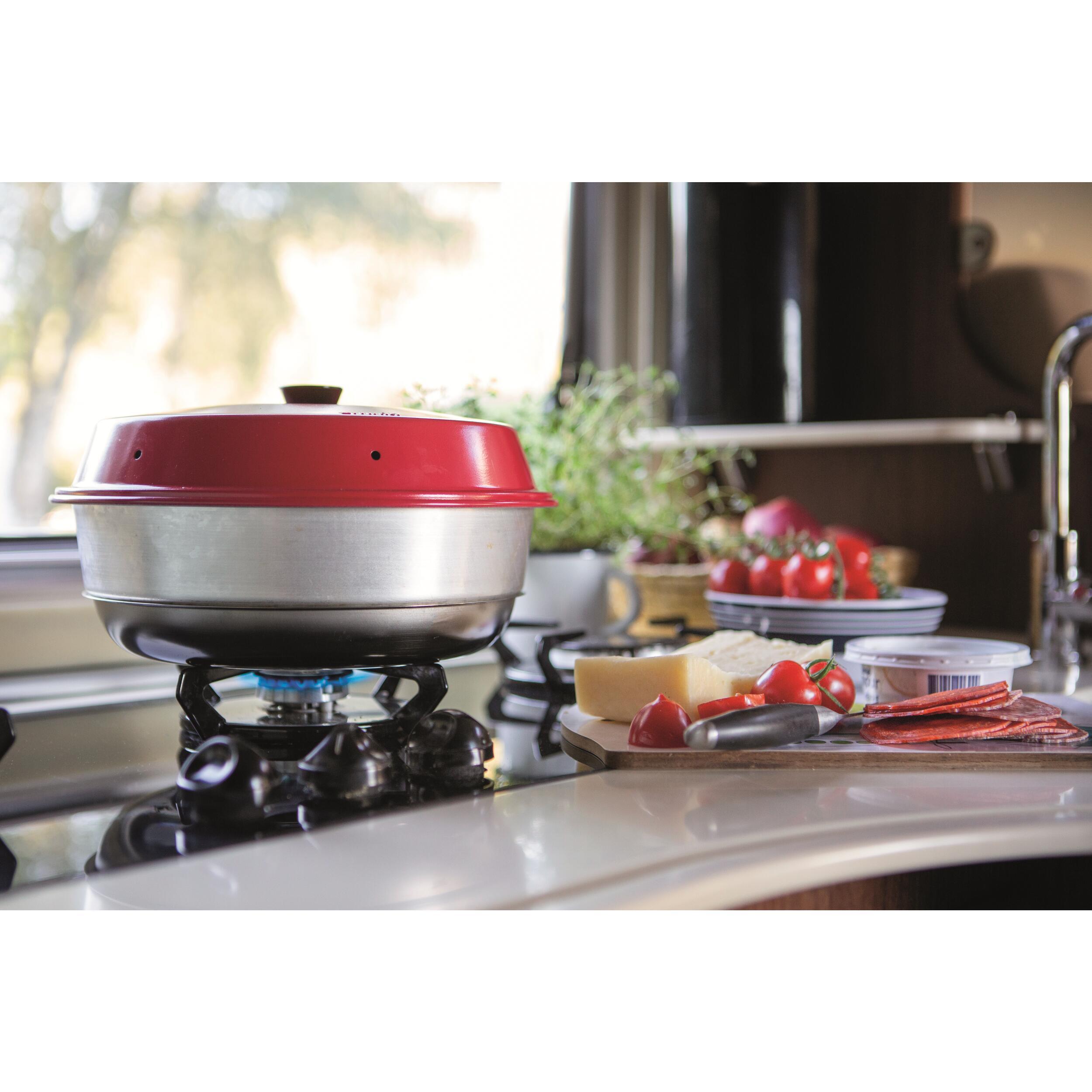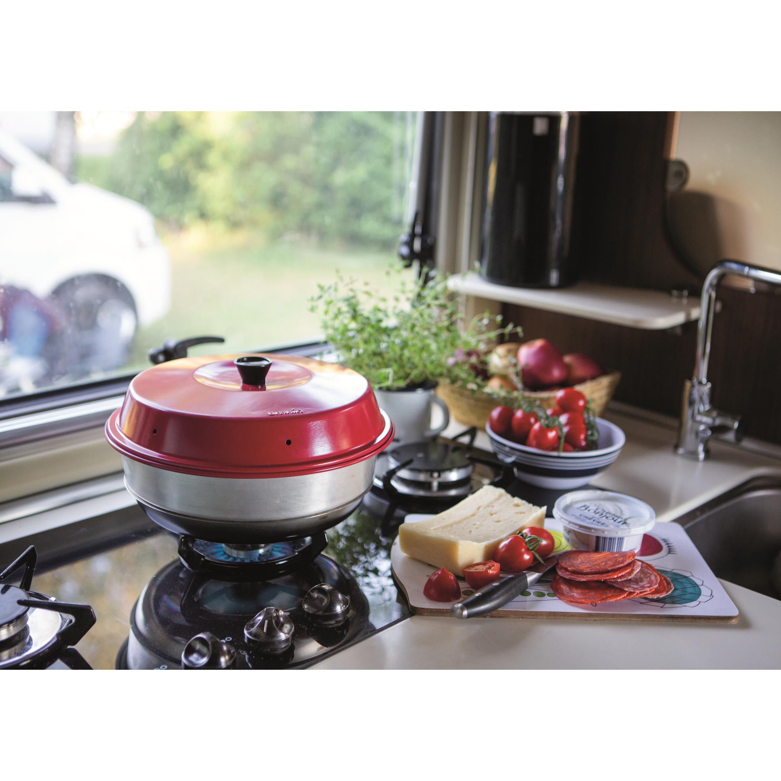 Le mini four portable fonctionne très facilement sur votre réchaud à gaz de camping ou sur des plaques de cuisson. Il est compatible avec tous feux sauf induction. En revanche, la puissance varie selon la cuisinière que vous possédez. Il est important d'adapter la chaleur en fonction.