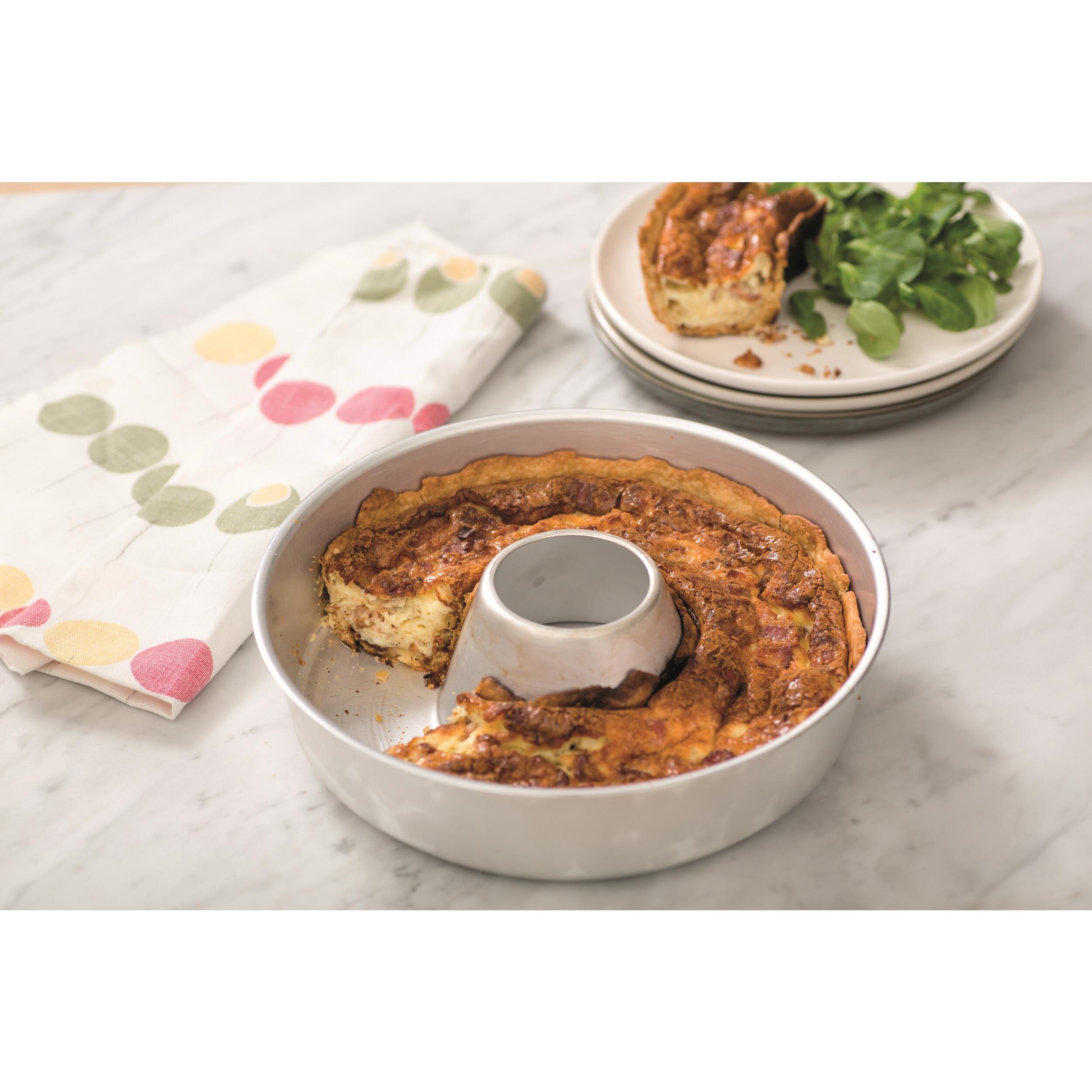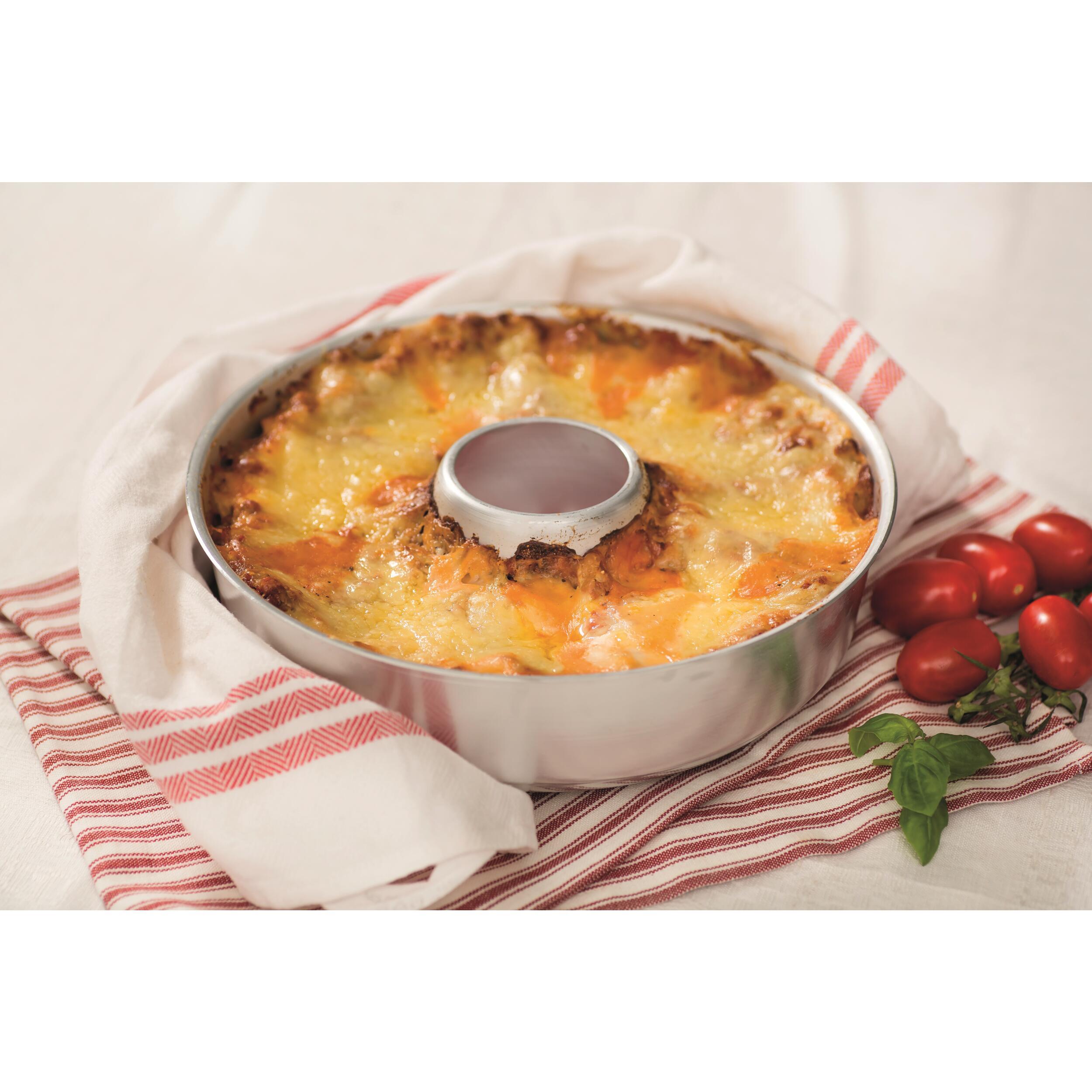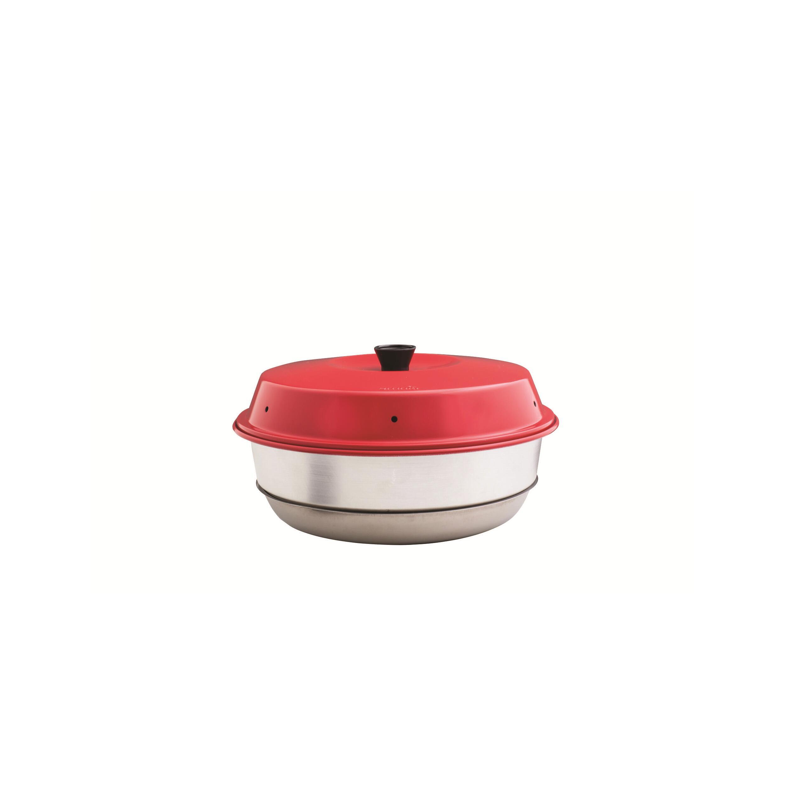 Cette construction en 3 parties et sa forme de découpe sont conçues pour produire une colonne d'air chaud entre la base et le dessous du moule en aluminium. Ainsi, la chaleur du réchaud ou de la plaque de cuisson se transmet par convection à la préparation culinaire et favorise une cuisson uniforme du bas vers le haut. La chaleur inférieur et supérieure donne le même temps de cuisson qu'un four normal. Il faut toujours utiliser les 3 éléments ensemble pour bénéficier d'une diffusion parfaite de la chaleur.