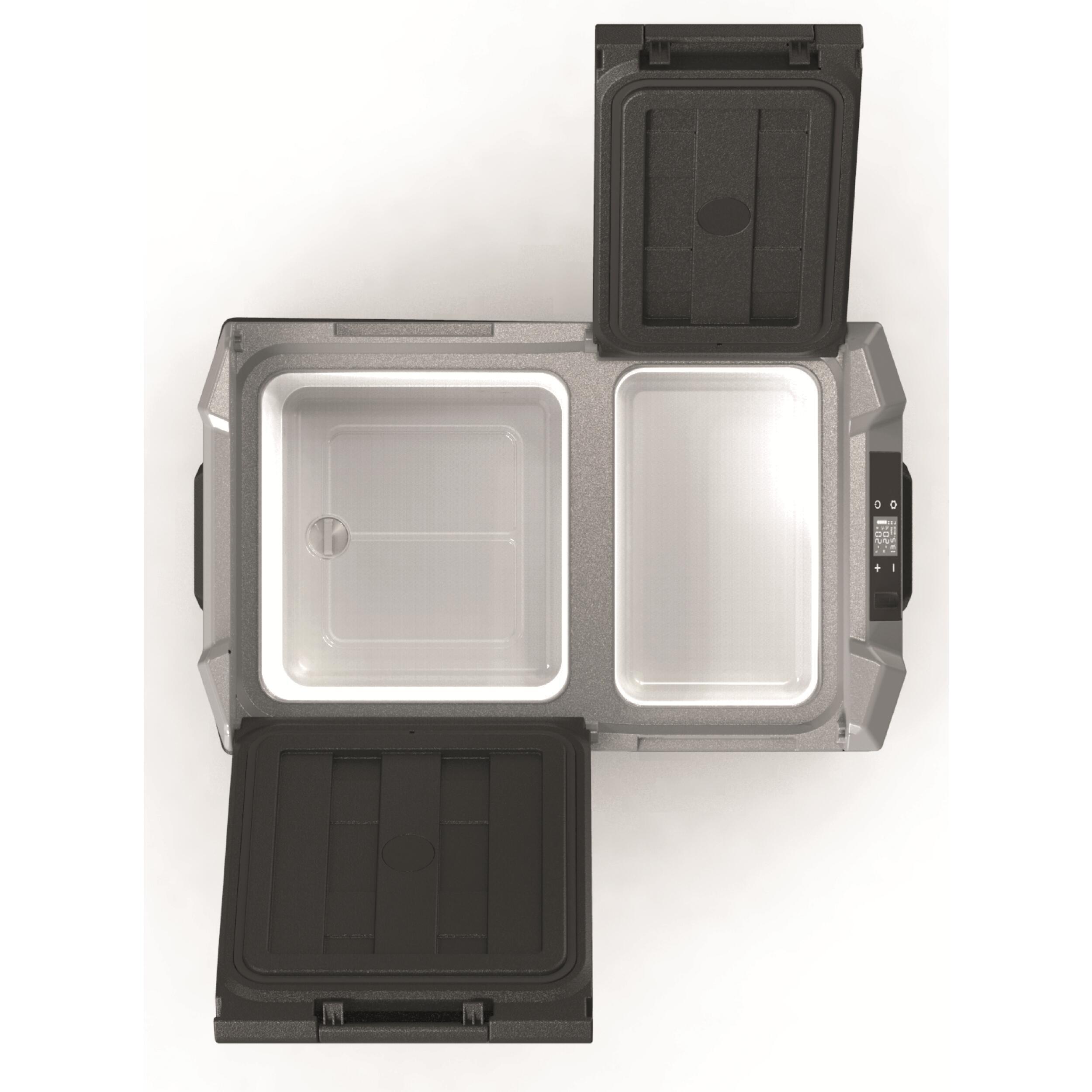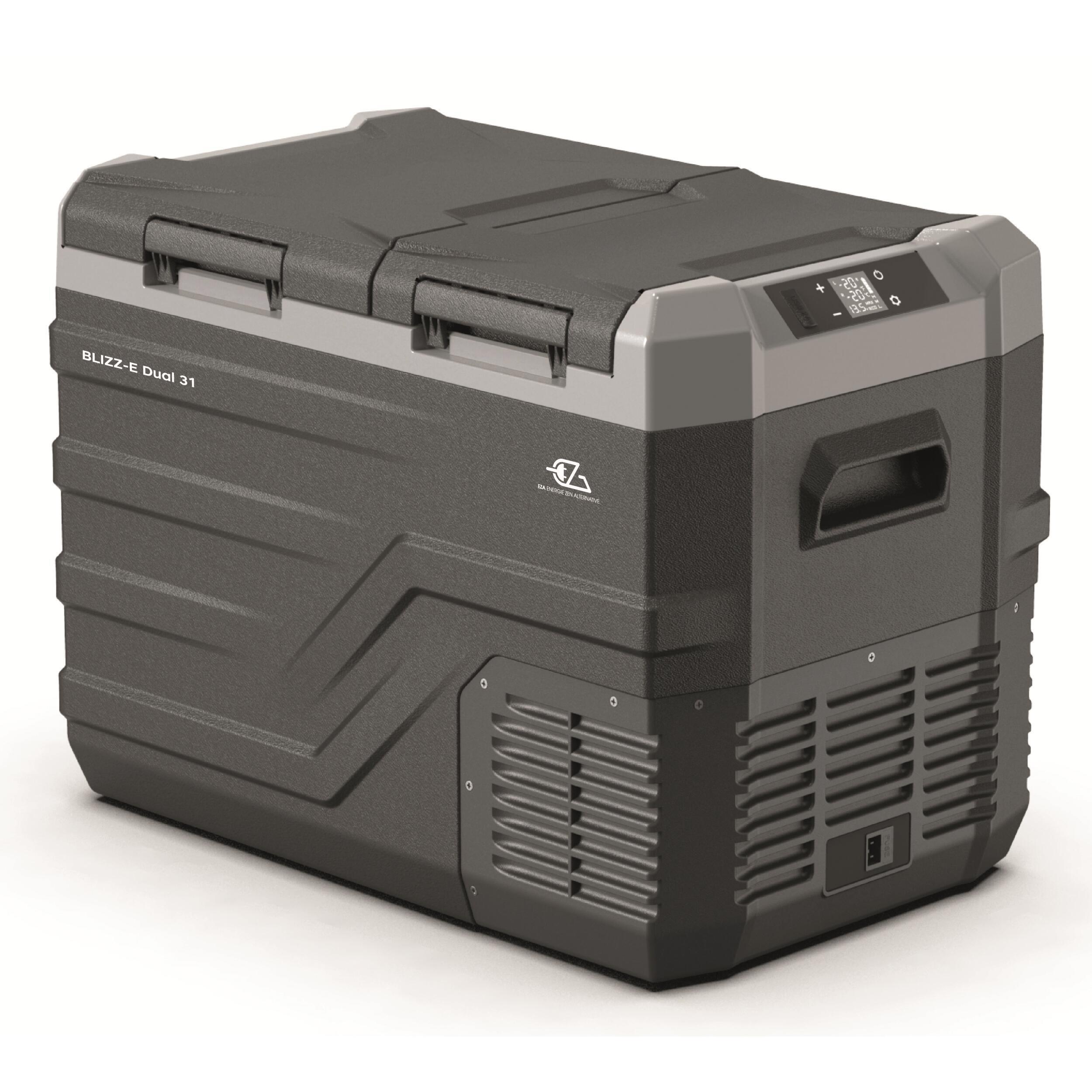 La glacière Blizz-E Dual est une solution très pratique avec deux compartiments indépendants pour réfrigérer et congeler simultanément. Elle offre un contrôle précis des températures via l’application mobile grâce à la connectivité Bluetooth, et intègre un port USB pour recharger des appareils. Avec ses deux capacités (31L et 39 L), elle est spacieuse, facile à transporter.