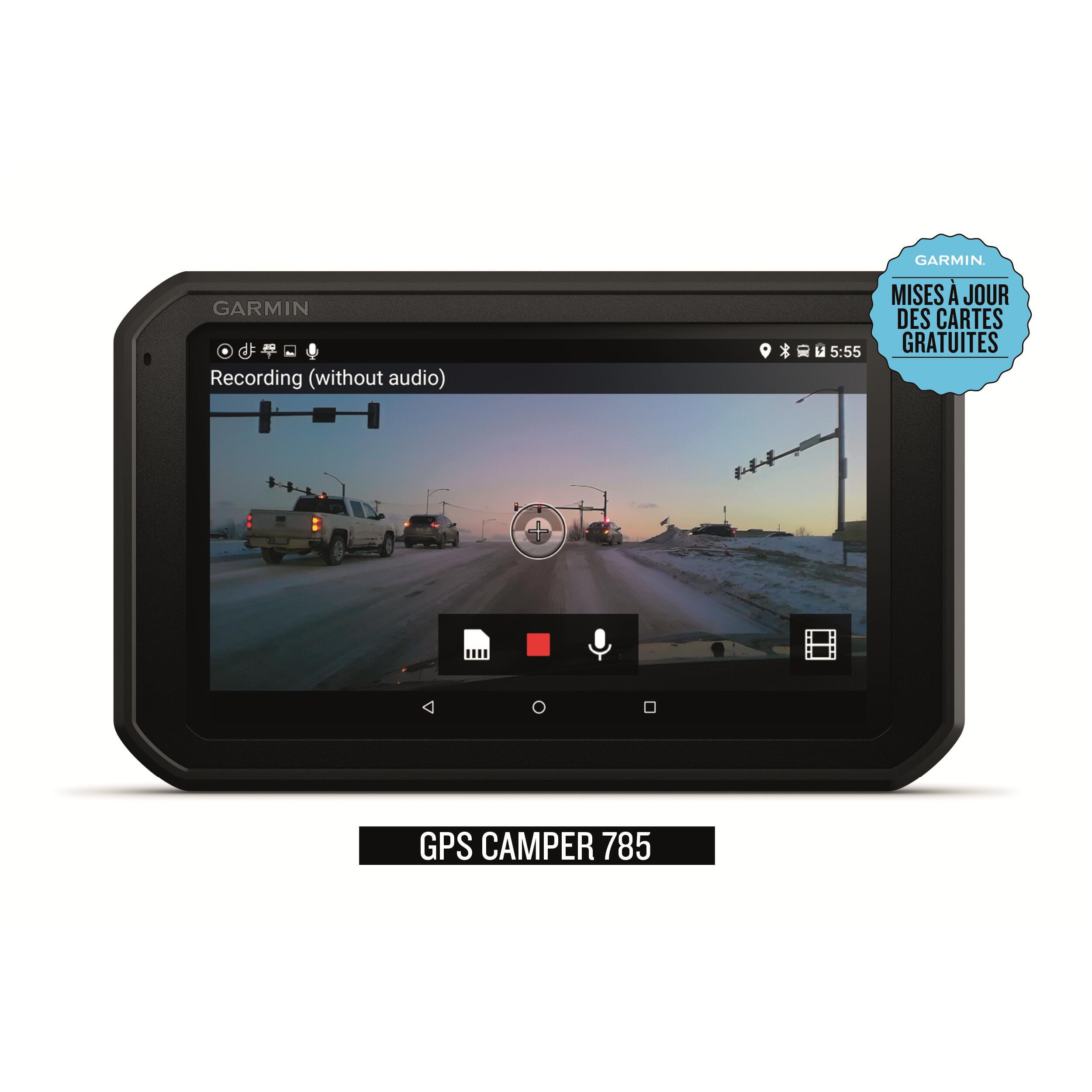 L'application gratuite Garmin Drive vous permet de connecter votre Camper 785 à votre smartphone (voir liste des compatibilités) : main libre, traffic info, notifications (SMS, emails, messages vocaux...) sur l'écran de votre GPS.
