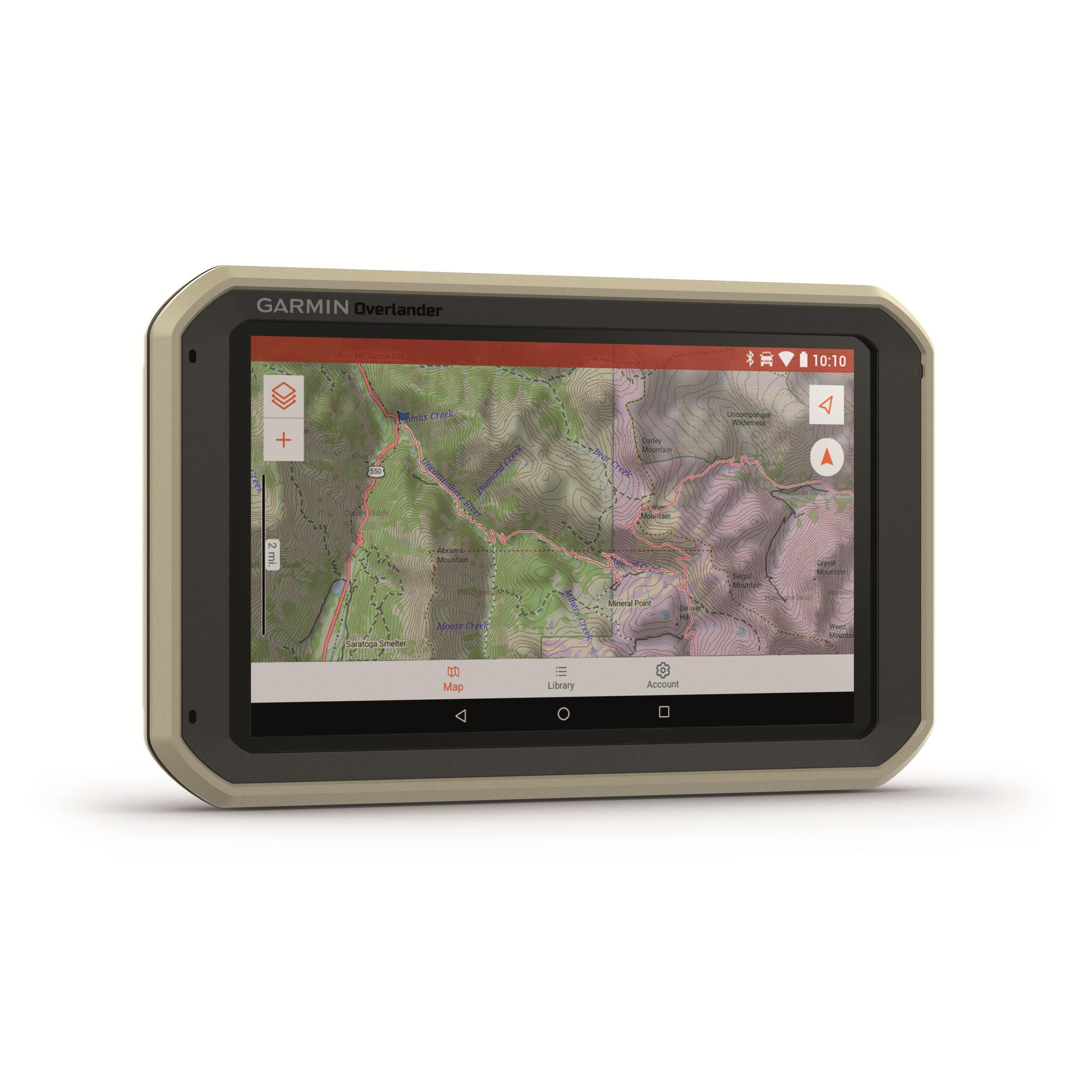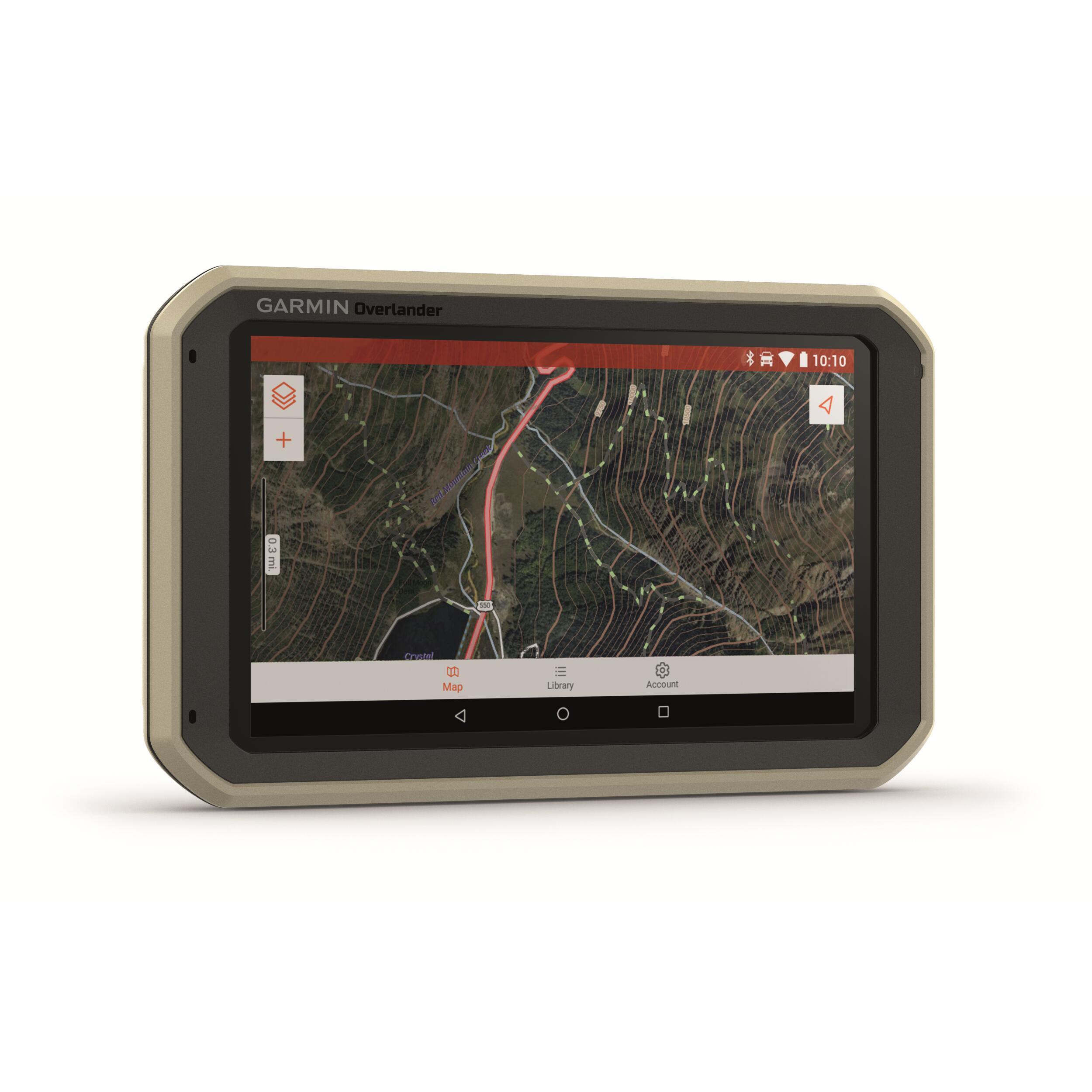 GPS camping-car et van Overlander. Ecran 7 pouces facile à lire. Navigation intuitive pour trajets en Europe, Moyen orient, Afrique du Nord et Afrique du Sud. Cartes topographiques intégrées avec possibilité de télécharger des cartes TOPO supplémentaires. Application Garmin Explore. Pas besoin de réseau pour trouver les aires de repos et camping sur votre trajet. Installation ultra robuste avec support magnétique, ventouse ou adaptateur compatible RAM. Jauges de roulis et de tangage pour navigation sur terrains difficiles. Itinéraire personnalisé par rapport au gabarit du véhicule. Possibilité de l'appairer avec un appareil inReach compatible pour la messagerie texte bidirectionnelle, le SOS interactif et les prévisions météorologiques. Boussole et altimètre intégrés. Trafic numérique pour déjouer le trafic sur la route.