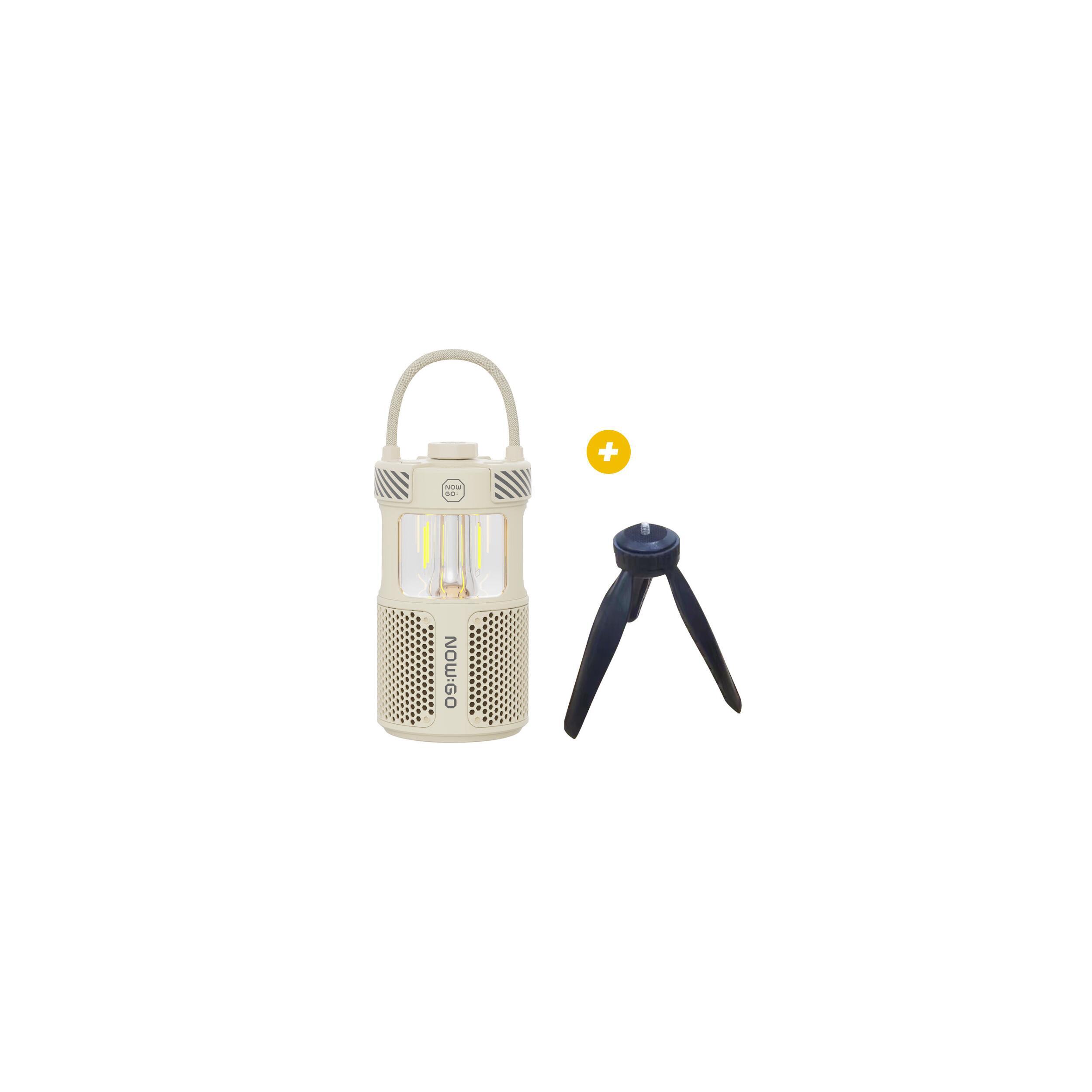 Le pack se compose d'une lampe / enceinte de camping rechargeable Follow Light F1 Sable et d'un pied de fixation associé.