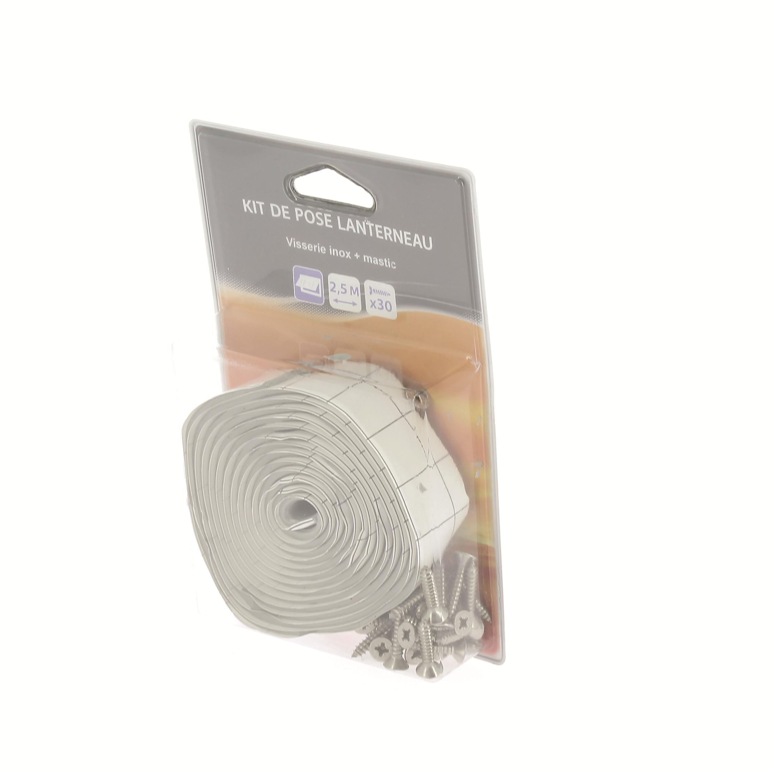 Ce kit comprend tout ce qu'il faut pour la pose d'un lanterneau : des vis inox et du mastic d'étanchéité gris.