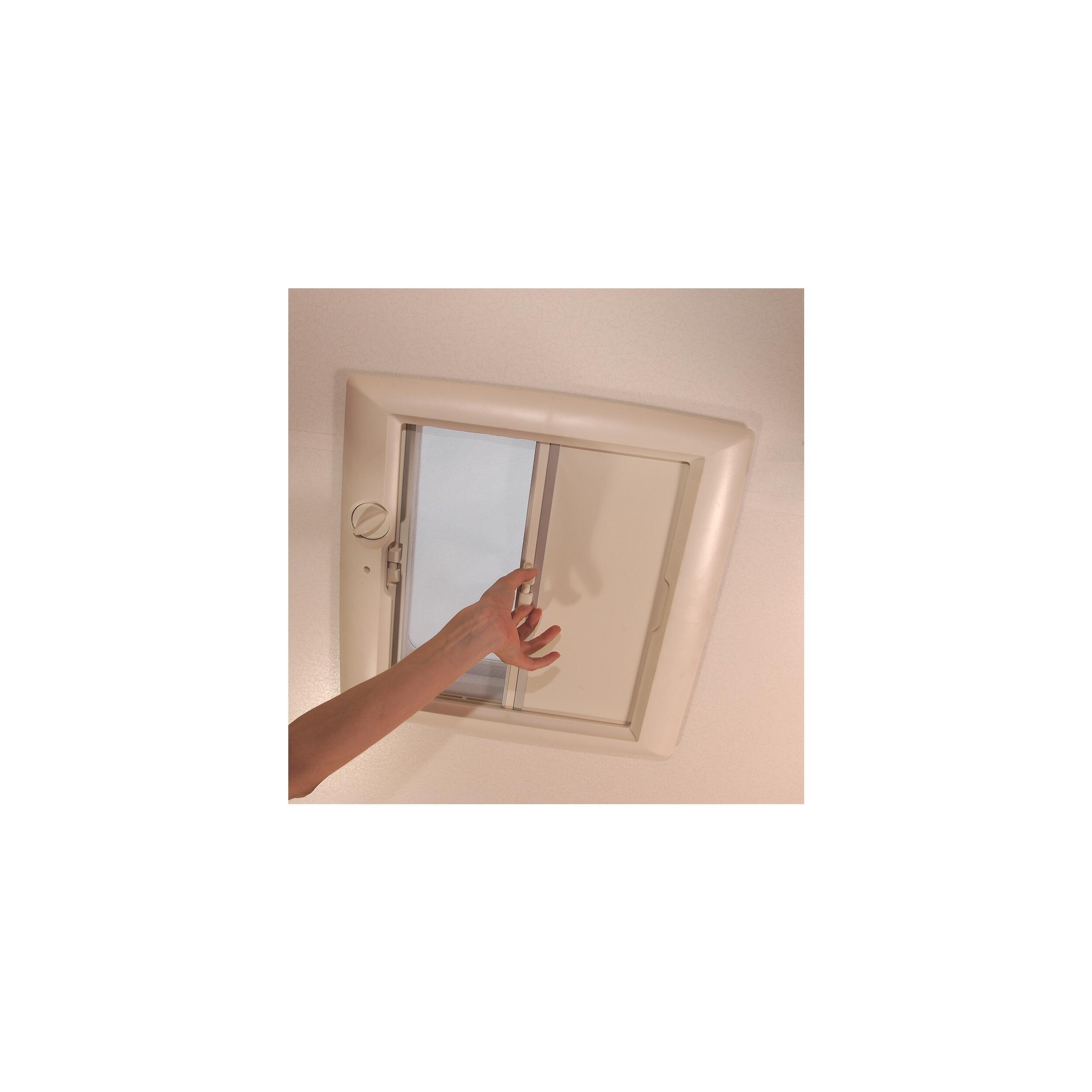 Le lanterneau Omnivent est équipé d'une manivelle qui permet une ouverture jusqu'à 40°. Le système de contre cadre intérieur intègre une moustiquaire amovible et un store occultant pour vous protéger des insectes et de la lumière. En plus, le dôme extérieur en plastique résistant aux chocs et aux intempéries vous protège même en cas de forte pluie.