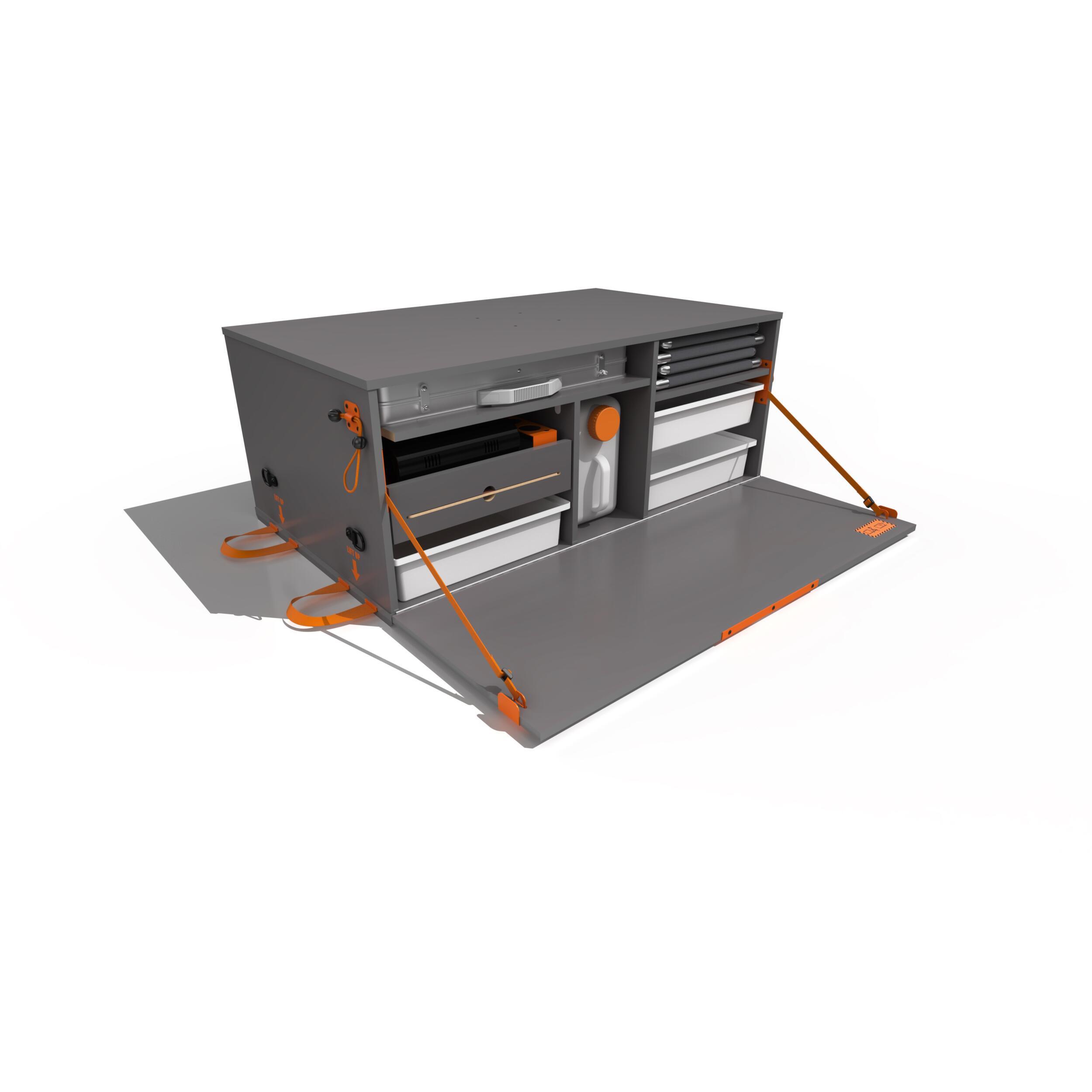 Ce modèle Bebox est proposé sans couchage, mais vous pouvez ajouter une tente de toit sur votre véhicule ou découvrir la malle Bebox avec couchage. Bon voyage !