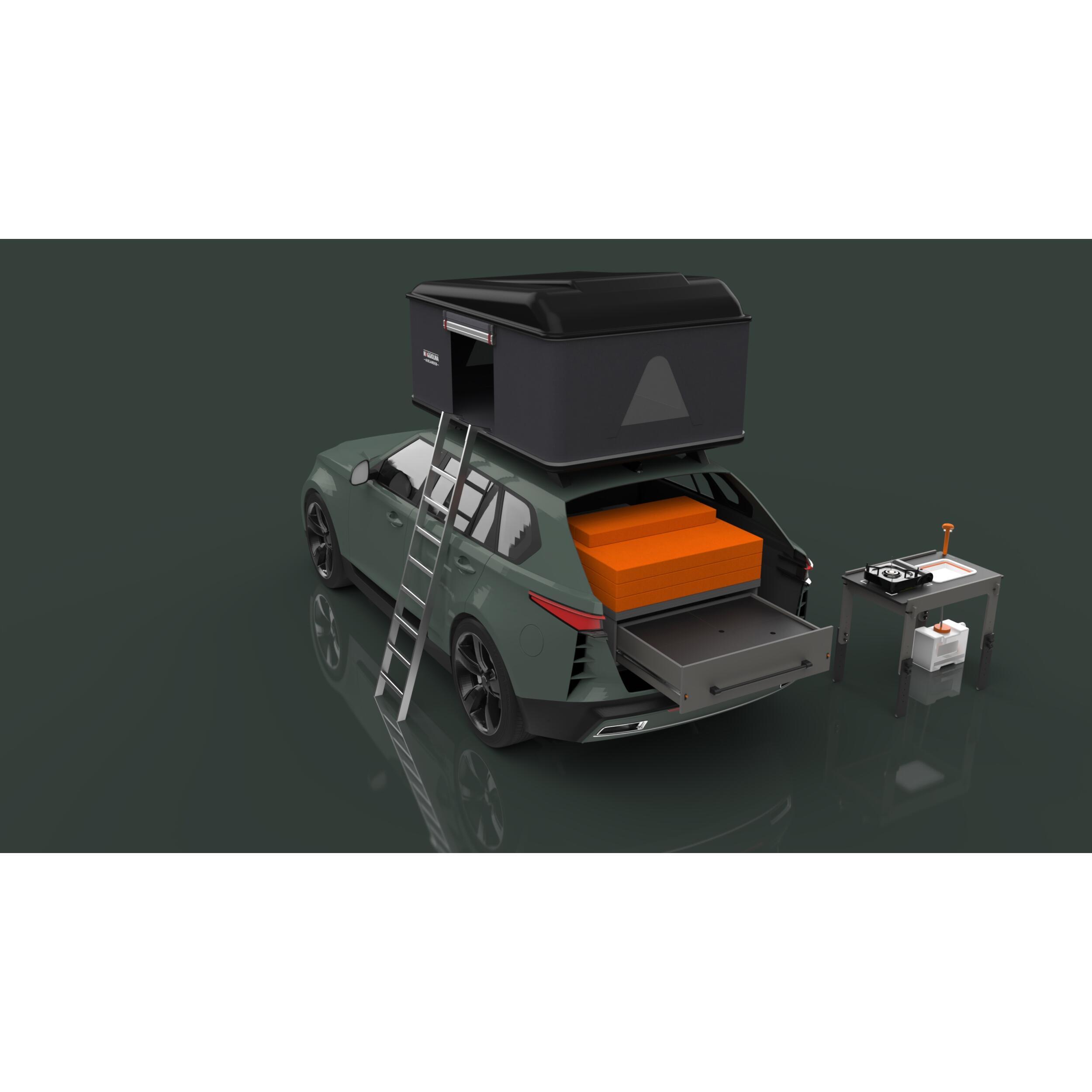 La Smart Bebox s'adapte aux SUV avec un coffre de 980 mm de largeur et 740 mm de profondeur. Pieds ajustables, kitchenette, rangements et couchage pour deux inclus. Optez pour l'aventure avec confort.