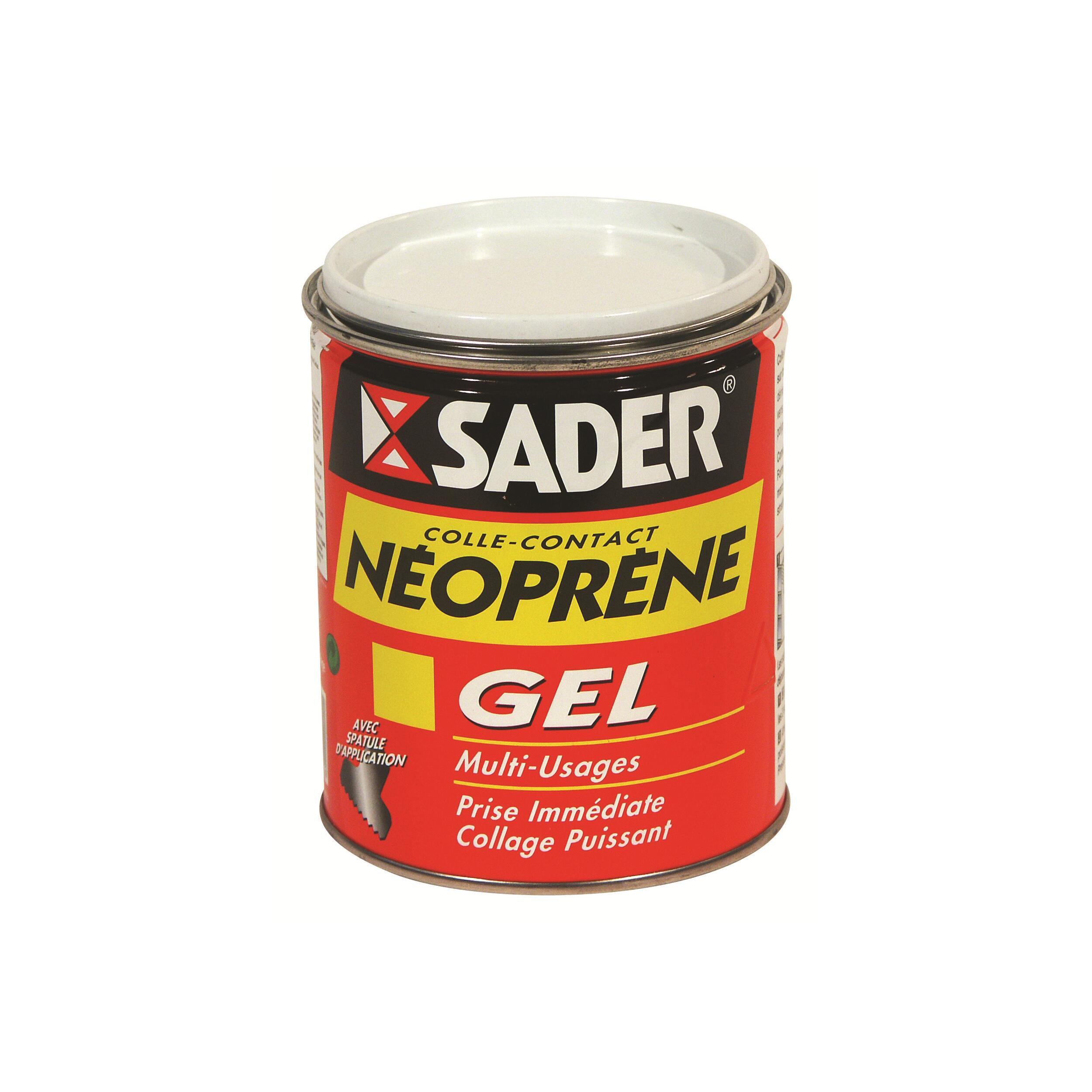 Colle contact Néoprène gel qui permet d'obtenir un très bon collage avec prise immédiate. Le gl ne coule pas et ne file pas. Cette colle convient pour murs et plafonds, pour liège, caoutchouc, cuir, papier plomb, métal, stratifié, aggloméré, plastique rigide etc...