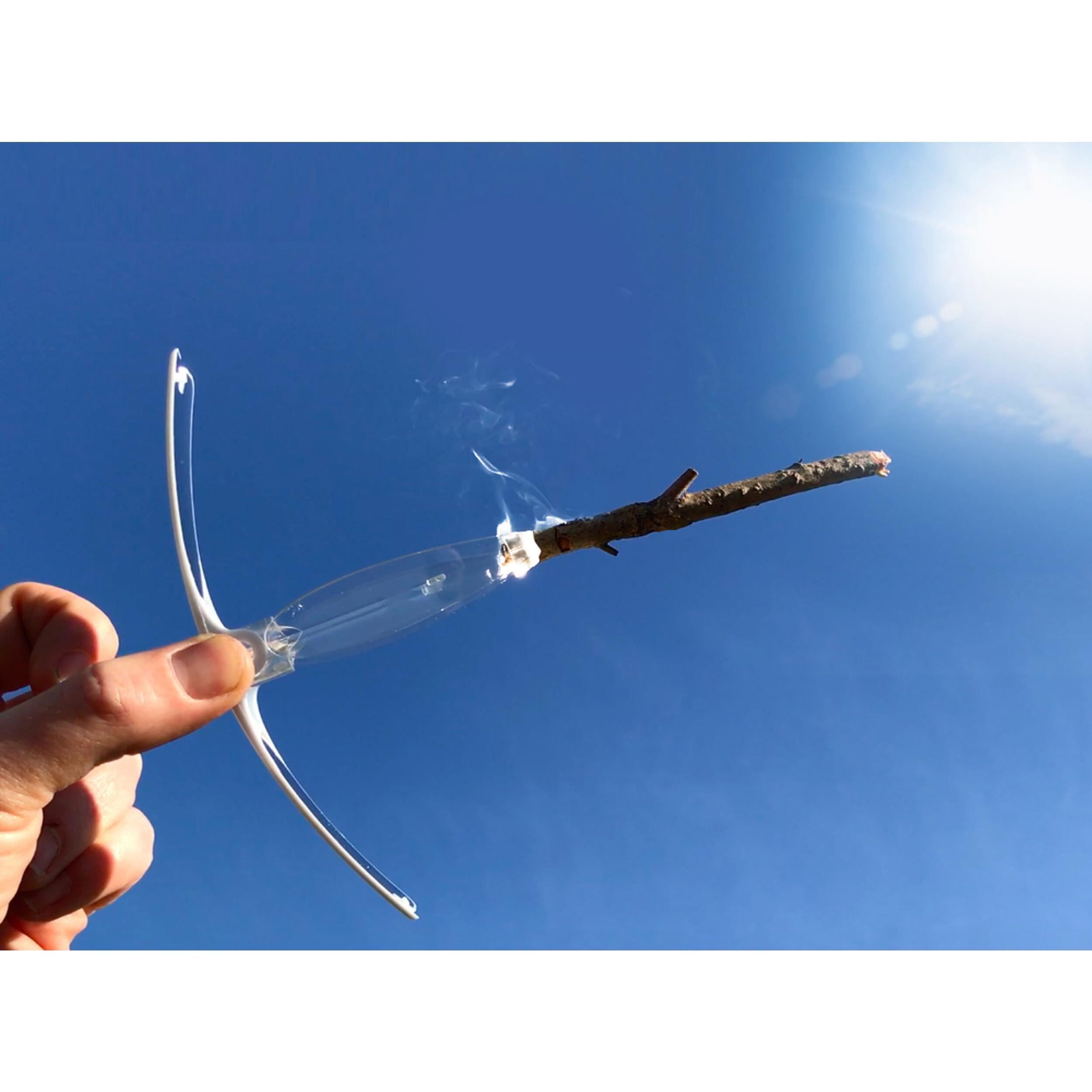 L'allume feu solaire concentre les rayons du soleil en un point entre les pinces pour obtenir un allumage immédiat par incandescence. Les objets que vous pouvez allumer sont nombreux : papier craft, journal, tabac, cône d'encens etc…