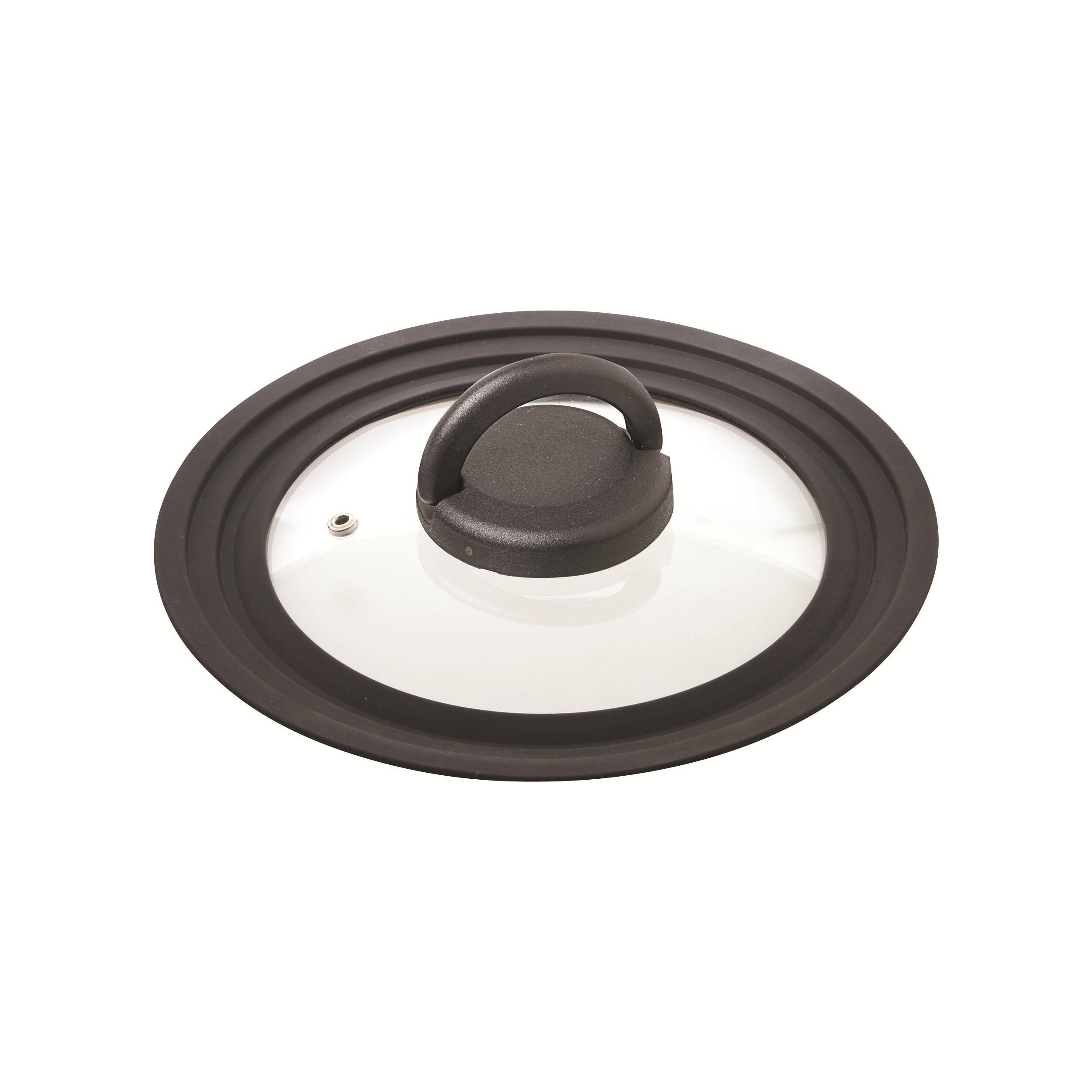 Le couvercle universel est en verre avec un bord en silicone. Il supporte parfaitement la chaleur d'une cuisson.