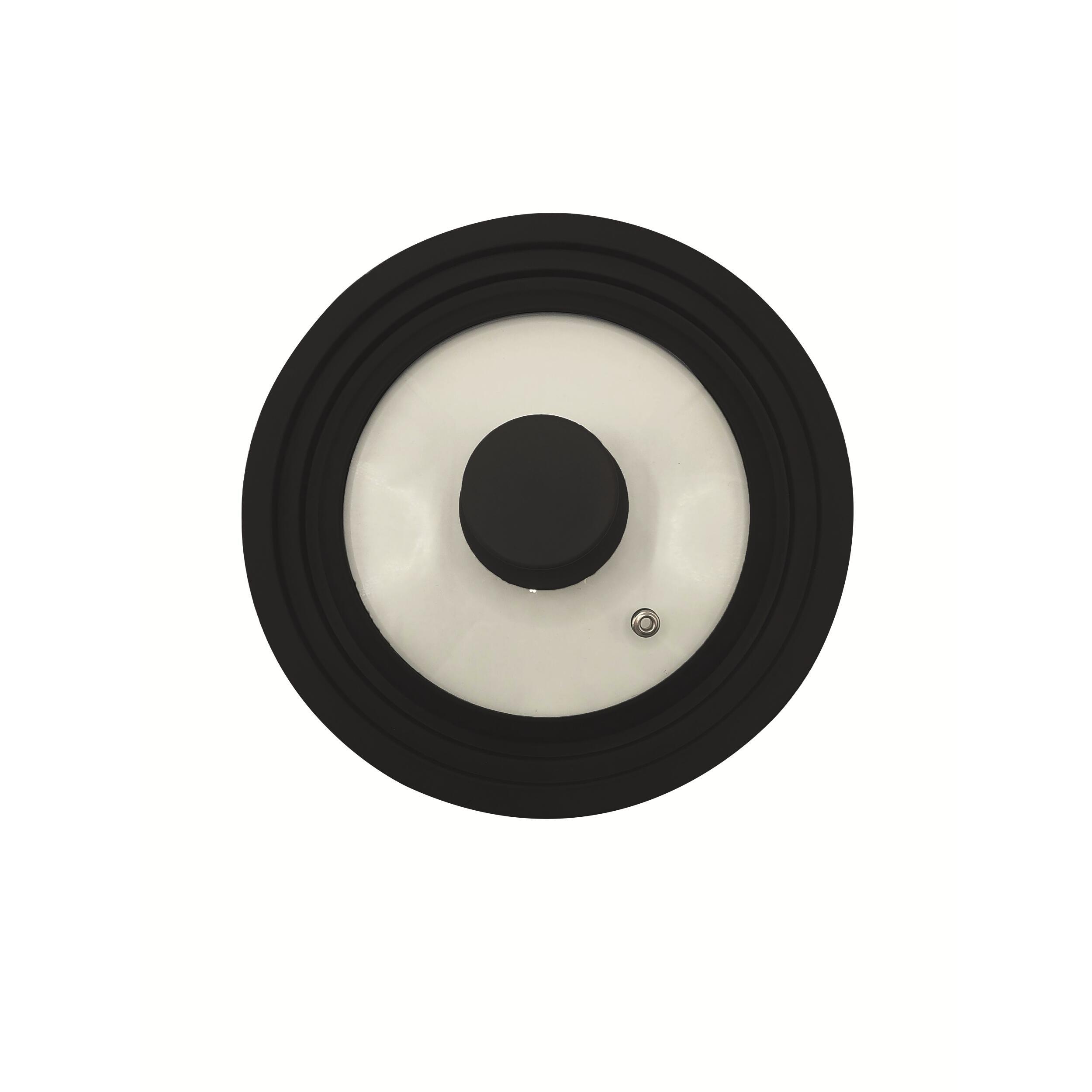 - Un couvercle universel avec le bord en silicone à gradins pour les casseroles et poêles (de différents diamètres).