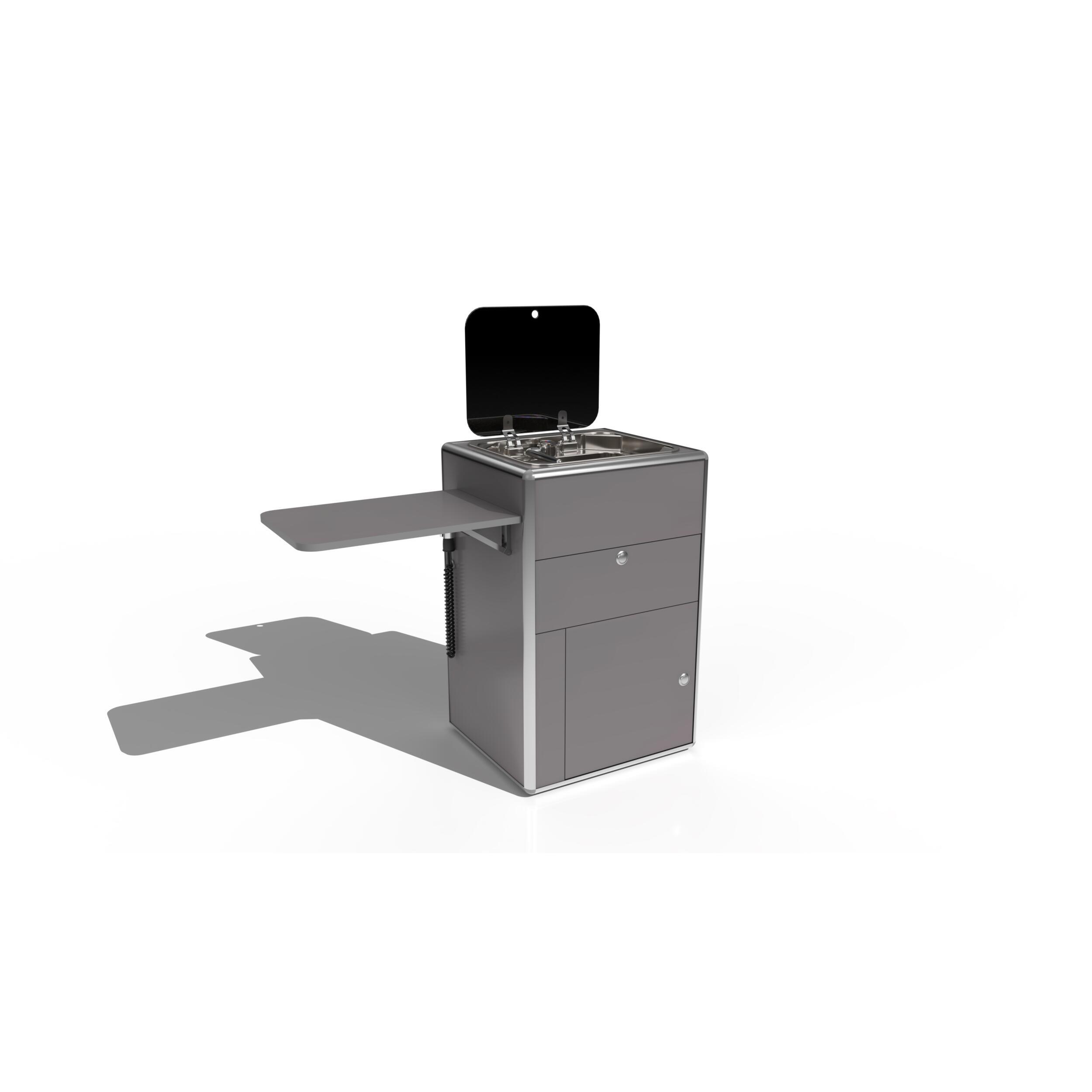 Cette solution amovible et prête à l’emploi est pensée pour un usage pratique en van. Elle comprend un évier inox avec couvercle en verre, un réchaud à un feu (cartouche non fournie), une tablette de travail latérale, deux jerricans de 13 L, et une pompe immergée 8 L/min.