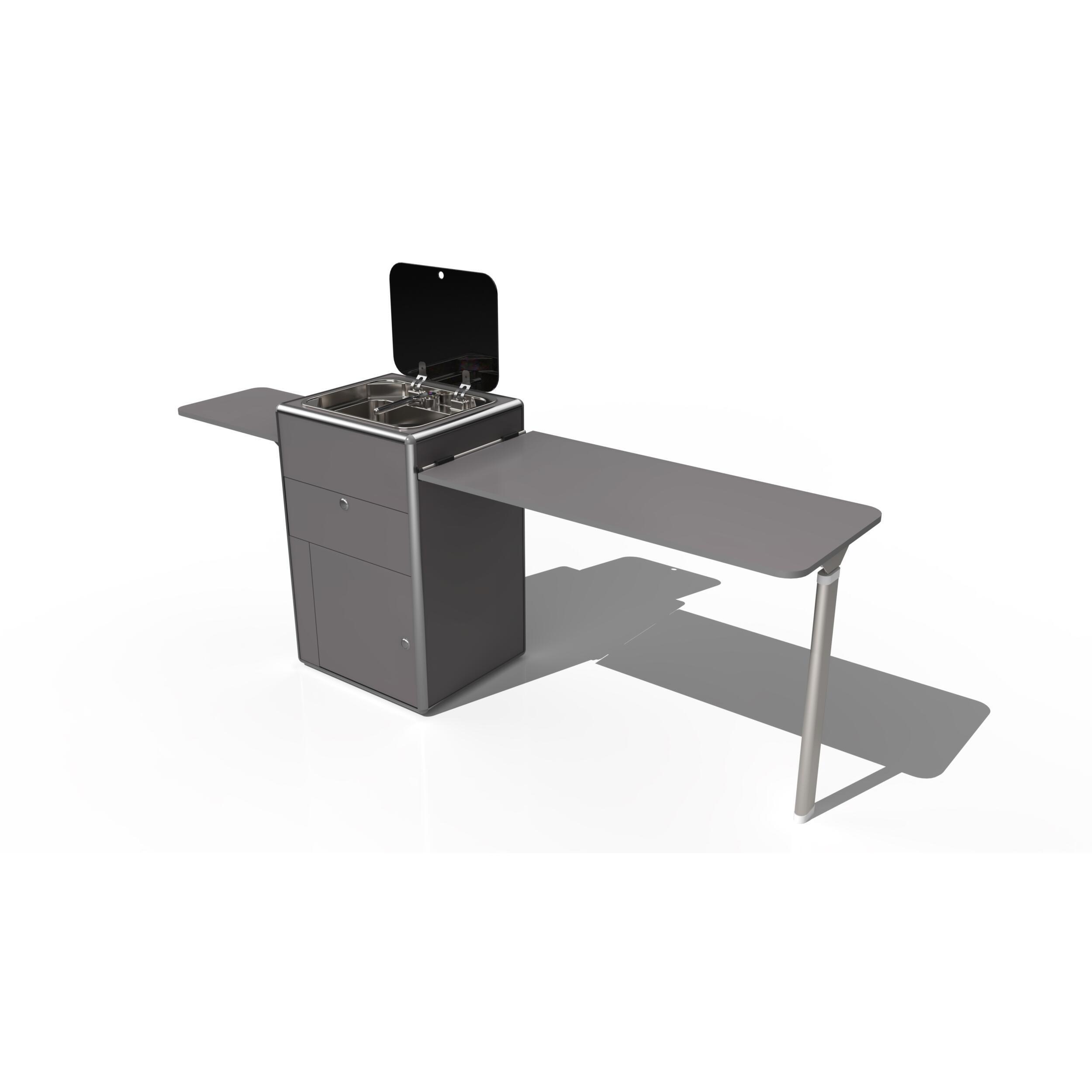 Cette table, prête à l’emploi, se clipse facilement sur le côté droit du meuble Blue Mountain. Idéale pour manger à deux, elle est pratique et peu encombrante.