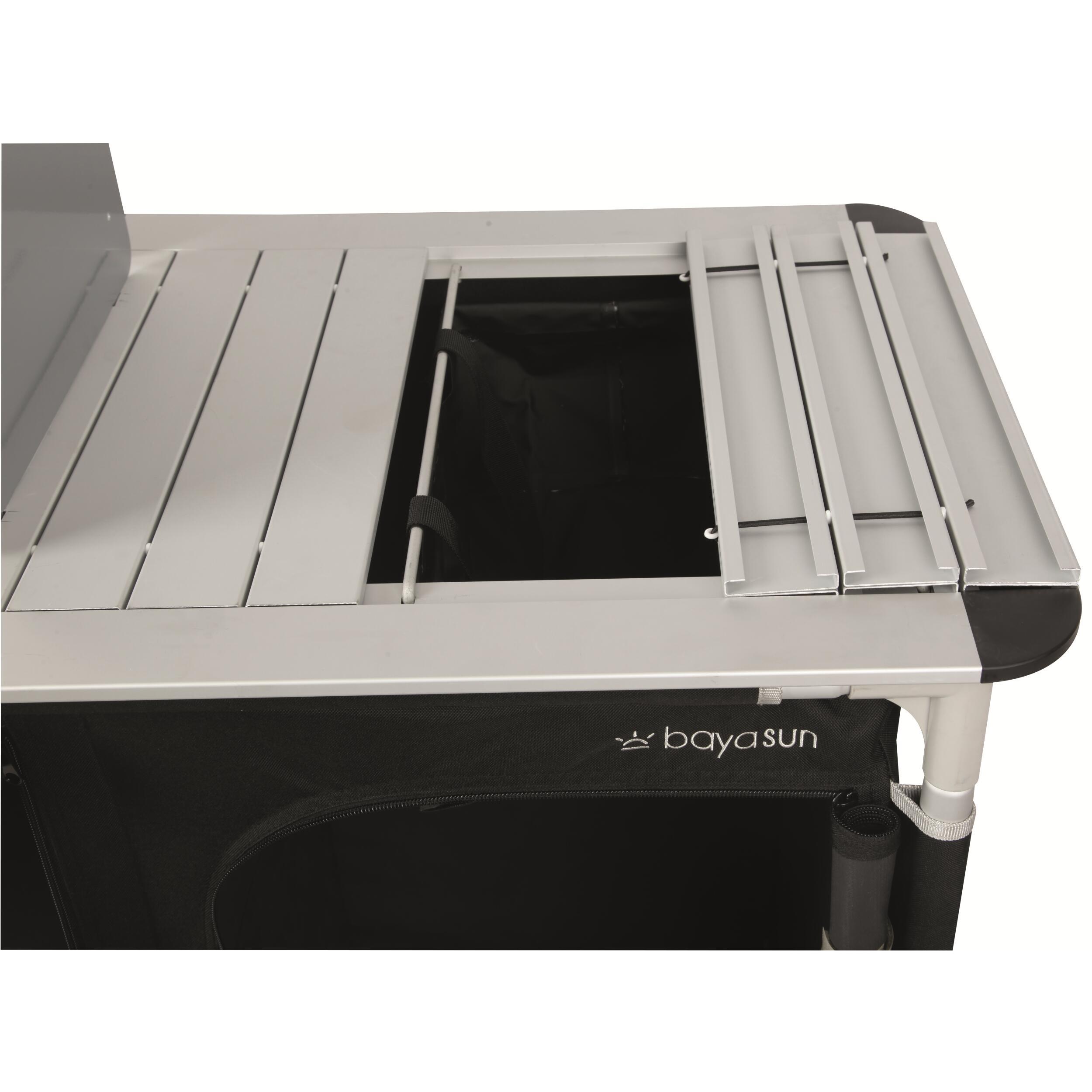 Le meuble de cuisine Baya Sun possède une structure en aluminium qui lui assure une stabilité et rigidité. De plus, l’aluminium est également un matériau léger en comparaison de l’acier.