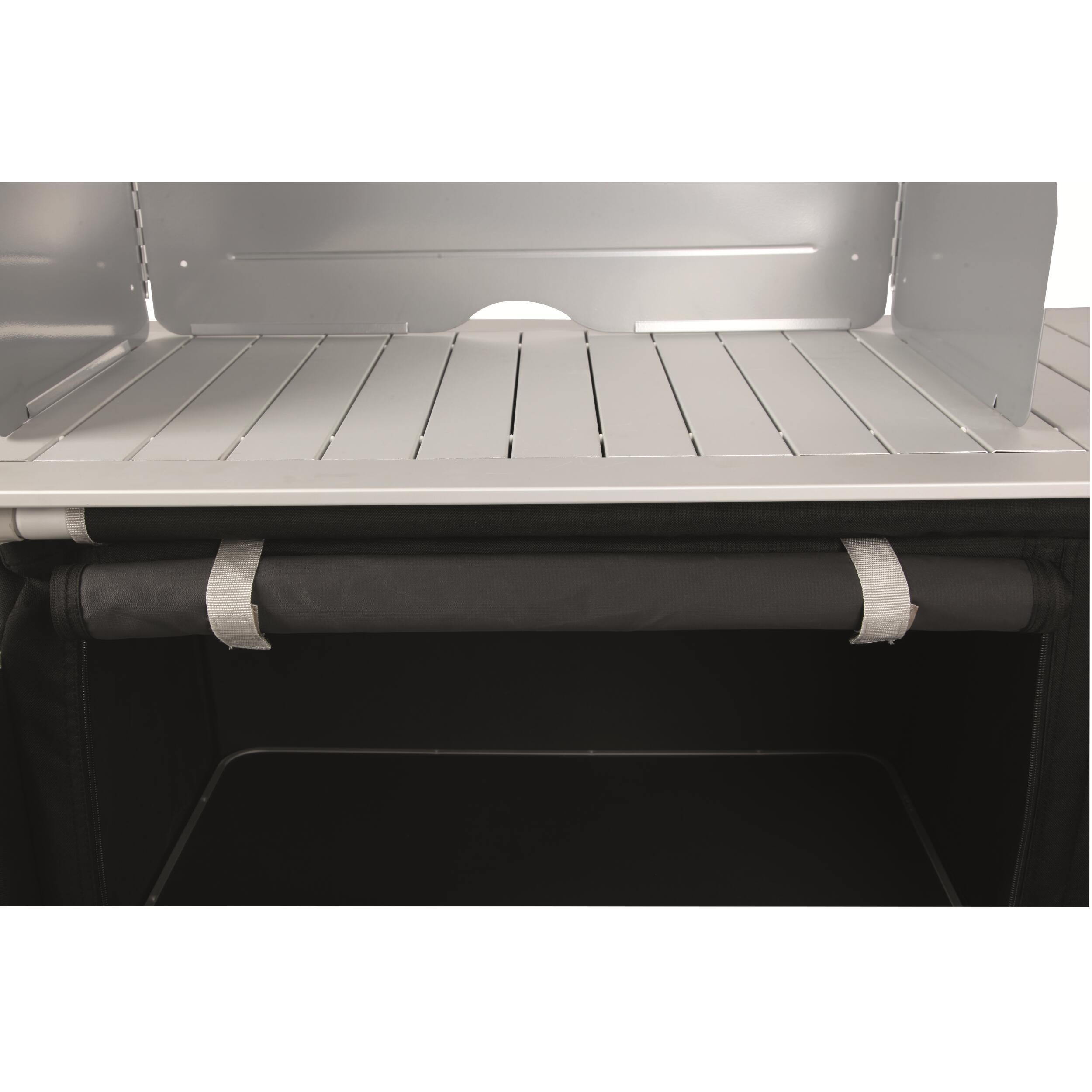 Grâce à l’emplacement pour une bouteille de gaz, vous pouvez utiliser un réchaud de camping ou un barbecue sans difficulté ! De plus, il y a un pare-flamme inclus.