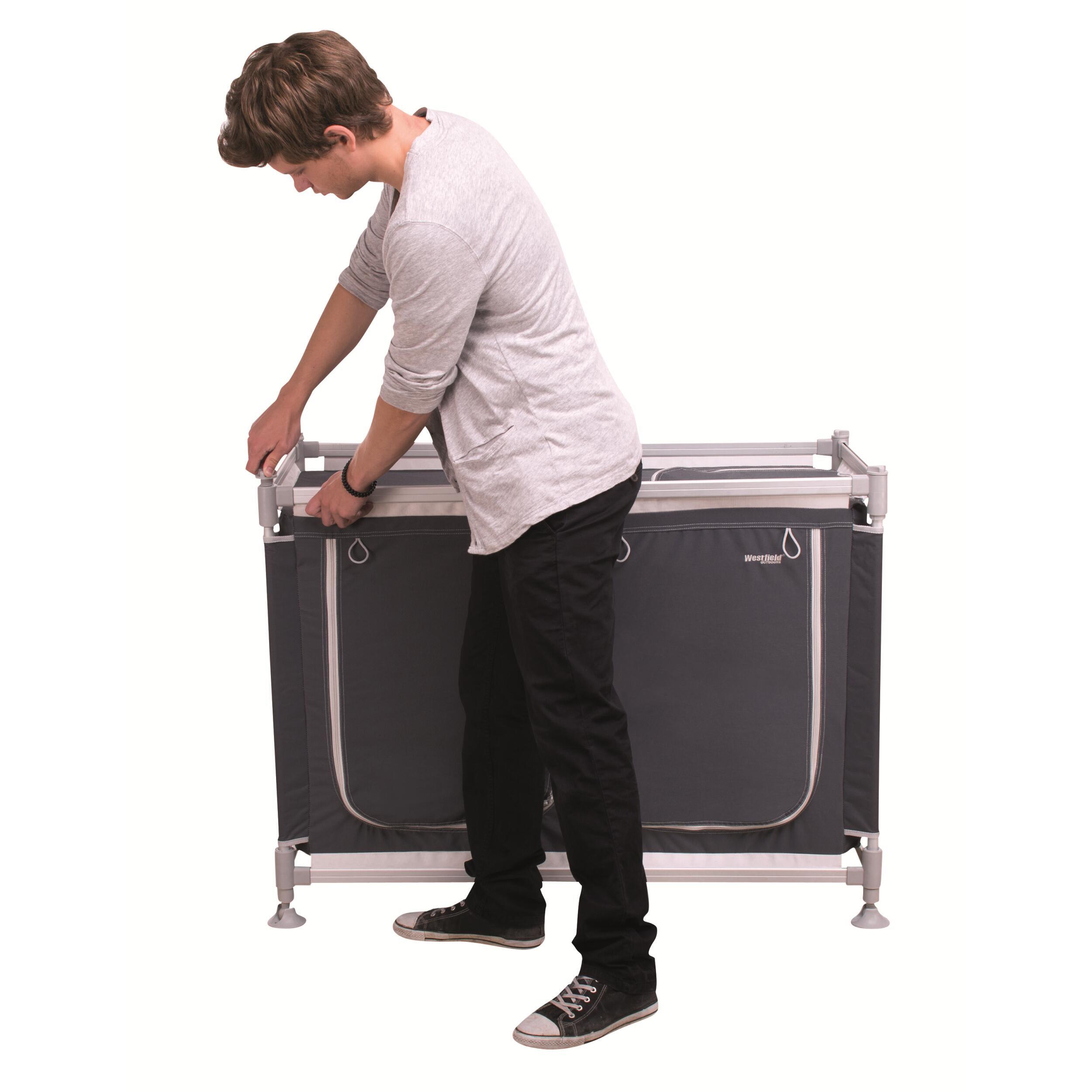 Le meuble se plie et déplie très facilement. En effet, en quelques minutes vous pouvez le stocker dans son sac de transport ou bien l’utiliser dans votre aménagement extérieur pour cuisiner.
