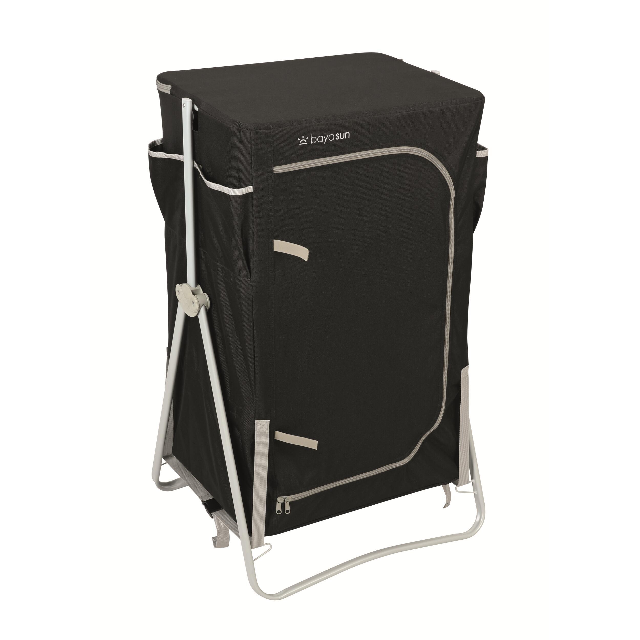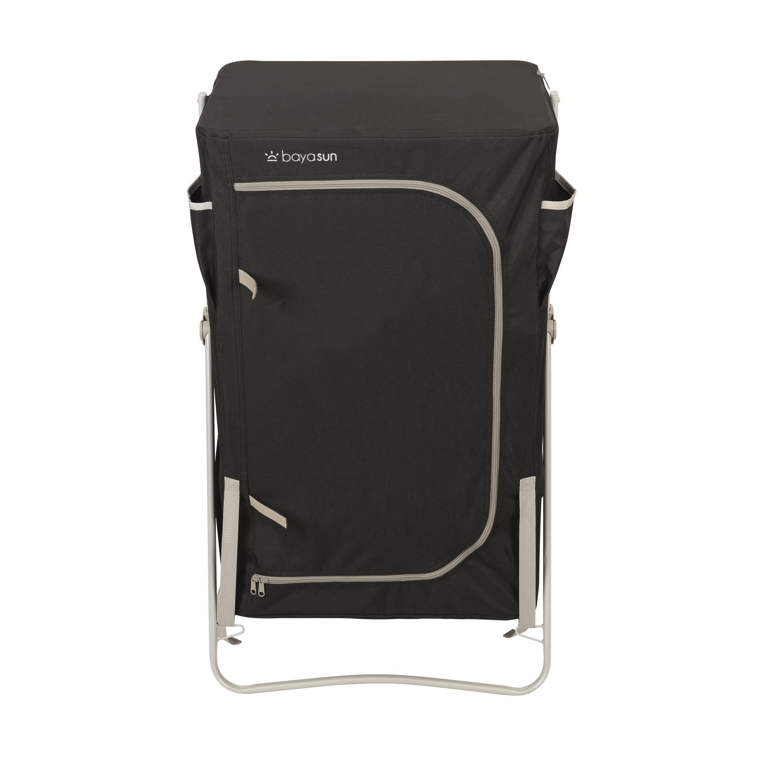 Meuble de cuisine pratique avec 4 espaces de rangement, poches latérales et plan de travail avec pare-flamme. Sa toile aérée en polyester 600D évite l’humidité, et ses pieds réglables assurent une bonne stabilité. Livré avec sac de transport.