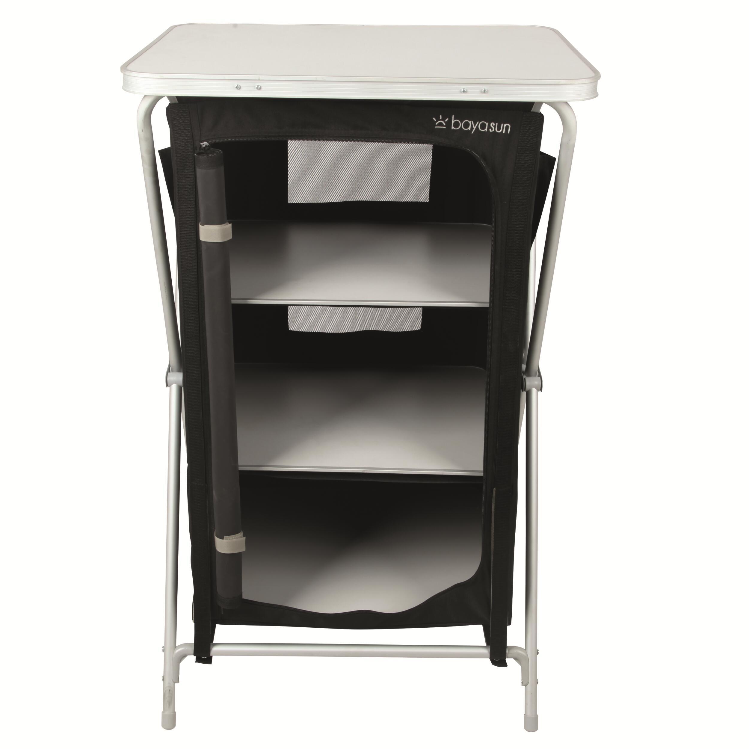 Disposant de 3 étagères distinctes, vous pouvez organiser votre rangement comme bon vous semble ! Et afin d'augmenter la capacité de stockage, le meuble de camping Baya Sun possède deux poches latérales.
