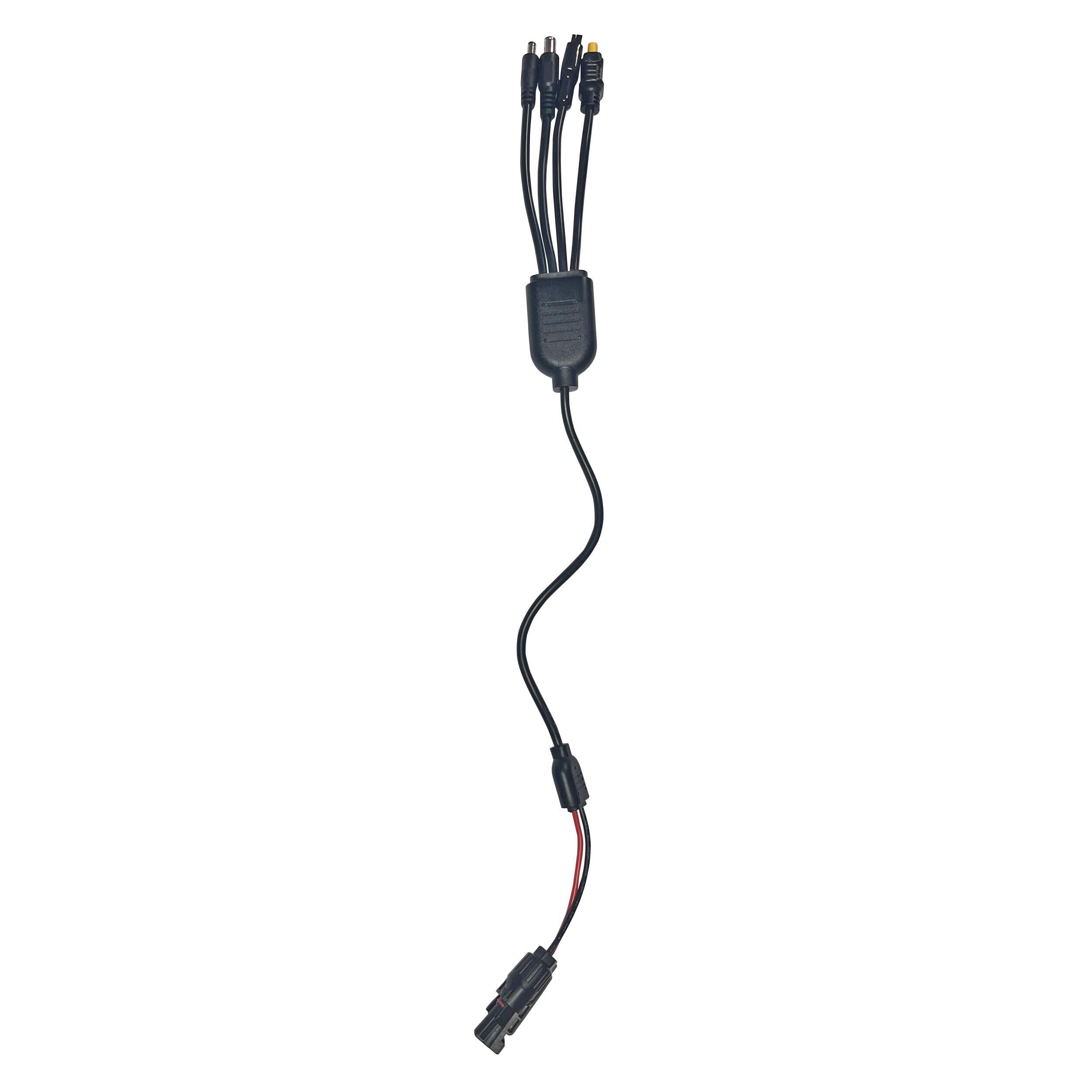 Compatible avec une large gamme d’équipements, il se branche facilement : le connecteur MC4 mâle se relie à votre panneau solaire, et les quatre sorties (Anderson, XT60, DC5521, DC7909) s’adaptent à la plupart des powerstations.