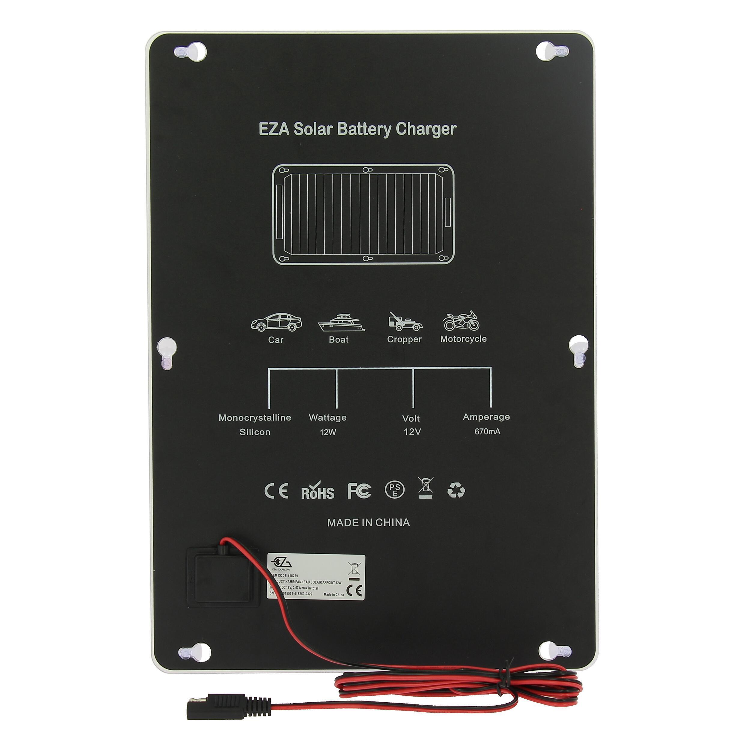 Le chargeur de batterie solaire 12 V maintient le niveau de batterie au minimum et prévient de la décharge profonde. Il allonge la durée de vie de votre batterie de démarrage.