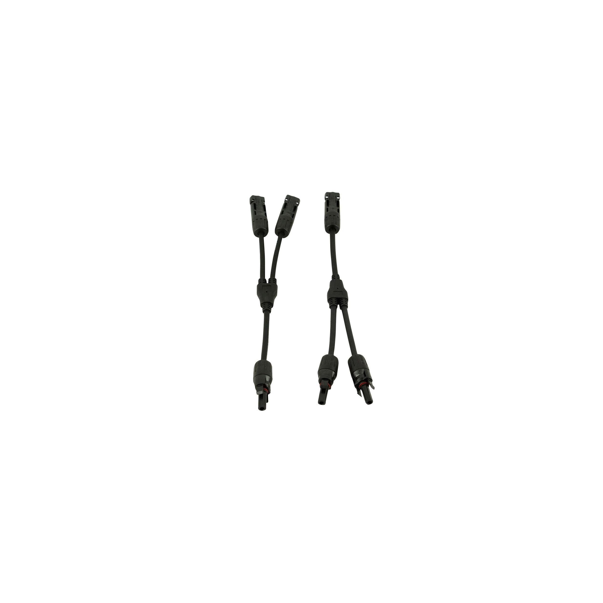- Connecteur MC4 à 2 entrées : mise en parallèle de deux panneaux. Lot de 2 cordons (connecteurs MC4 mâle et femelle)