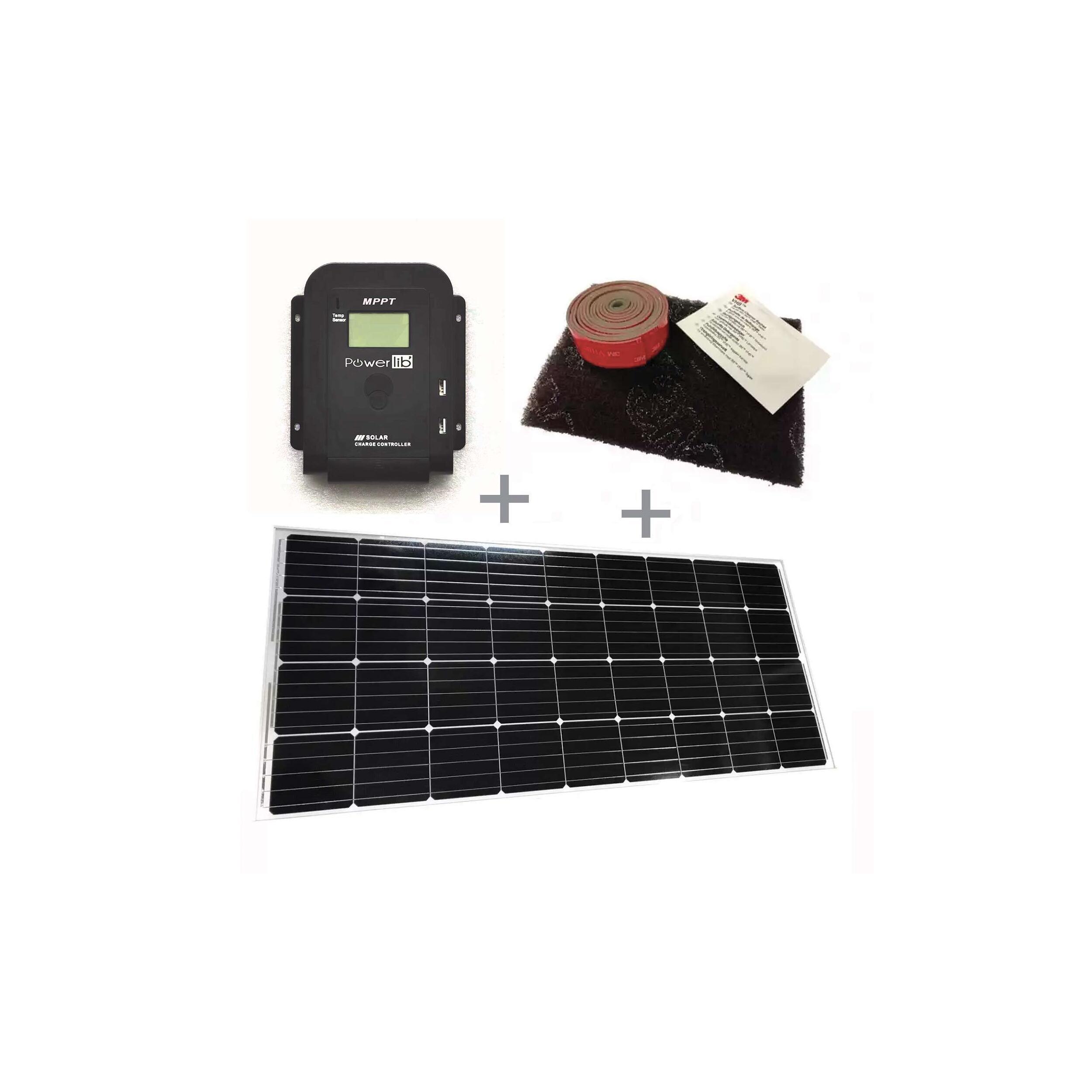 Composition du Pack Panneau solaire E-ssential Flat 155W + Régulateur solaire MPPT LCD – 10A + Kit adhésif
