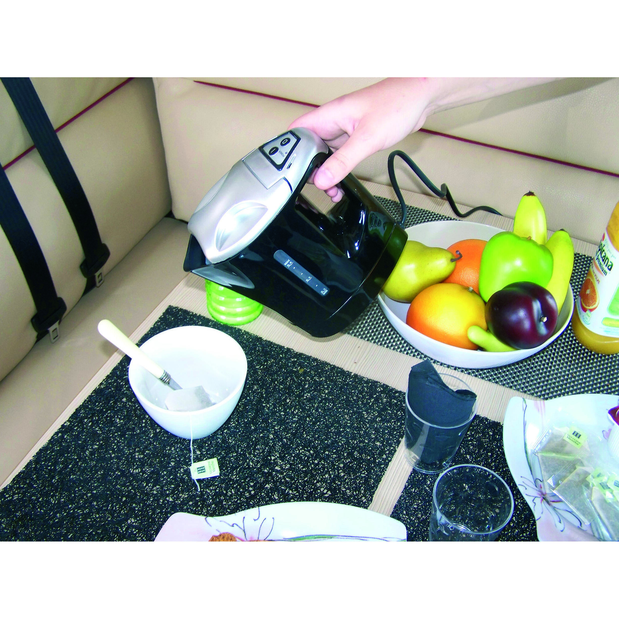 La bouilloire électrique 12 Volts est adaptée pour les voyages en véhicule (voiture, camping-car, van, fourgon...). Elle est donc parfaite pour desexcursions avec votre véhicule de loisir.