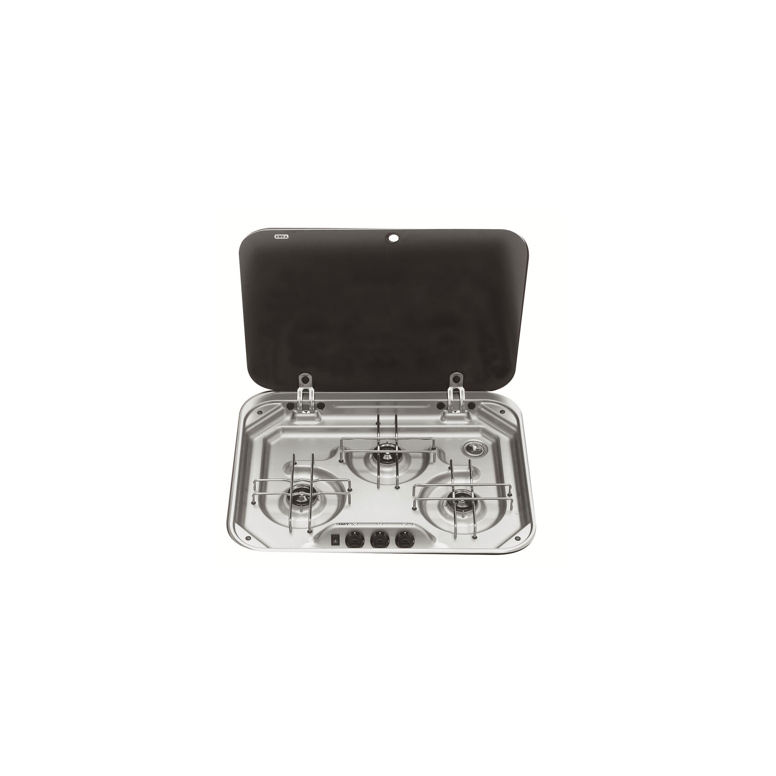 Réchaud 3 feux à encastrer. Avec couvercle en verre trempé.