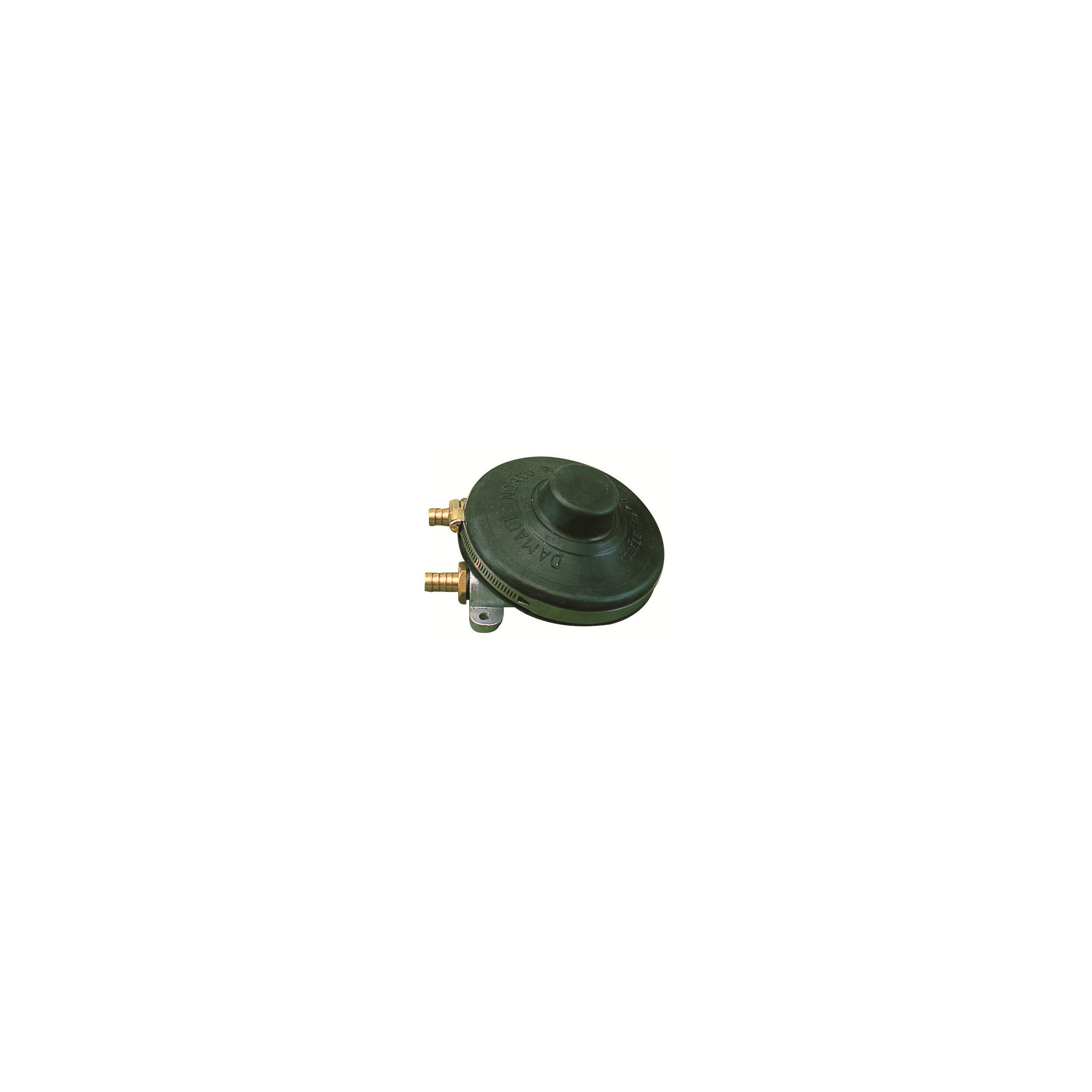 Débit : 5 à 6 litres / minute. Embouts cannelés pour tuyau 10 mm. Fixation par vis (non fournies). Dim. (H x Diam.) : 68 x 113 mm.