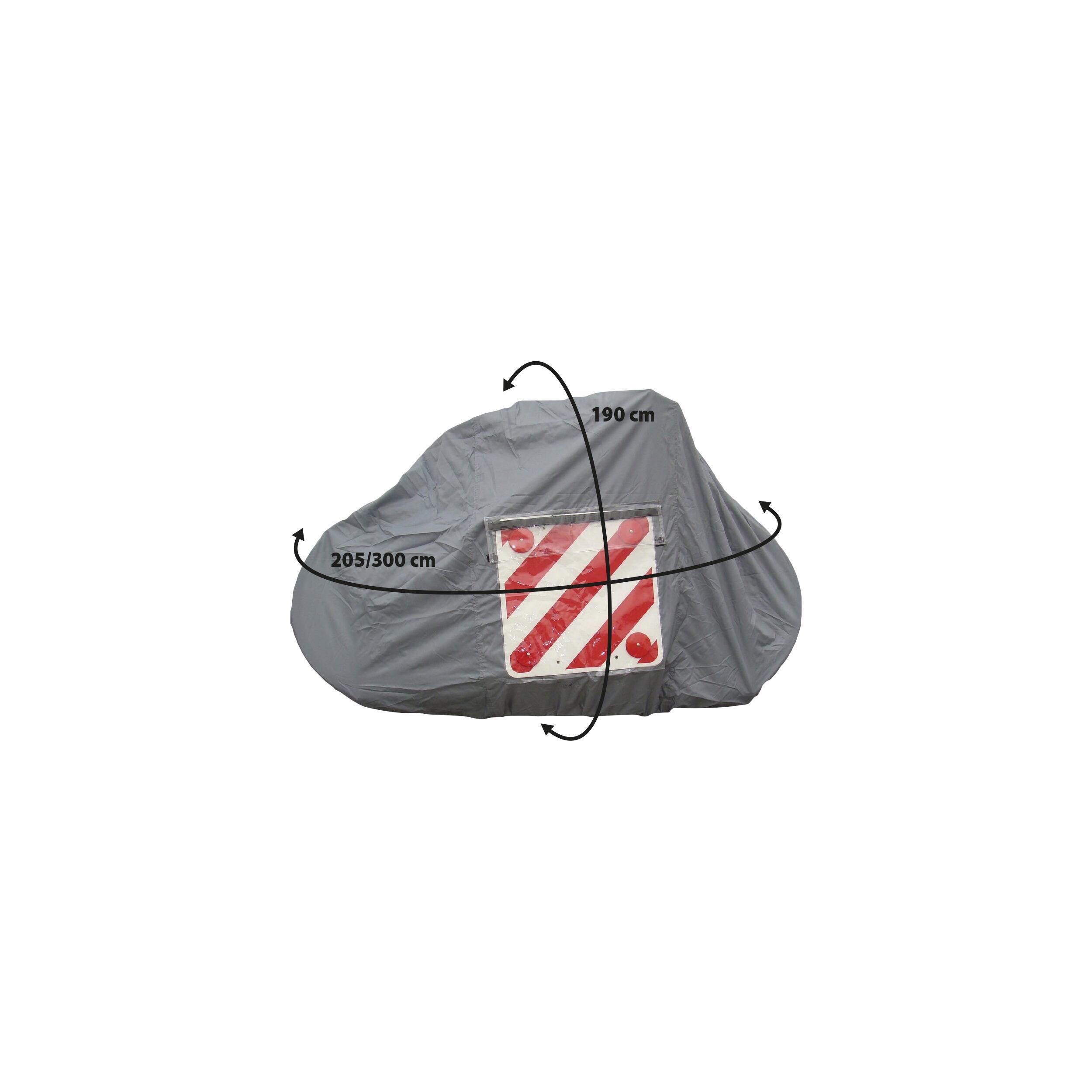 Housse de protection pour porte-vélos sur la paroi arrière de camping-car, fourgon et caravane. Ce modèle de bâche est fait pour les porte-vélos placés à l'arrière des véhicules de loisirs, il permet de protéger les vélos des intempéries et de la corrosion sur les parties mécaniques. La bâche permet également d'éviter des regards curieux. Une fenêtre transparente permet l'ajout d'un panneau de signalisation réfléchissant (en option). Deux sangles réglables sont fournies pour ajuster le bâchage.