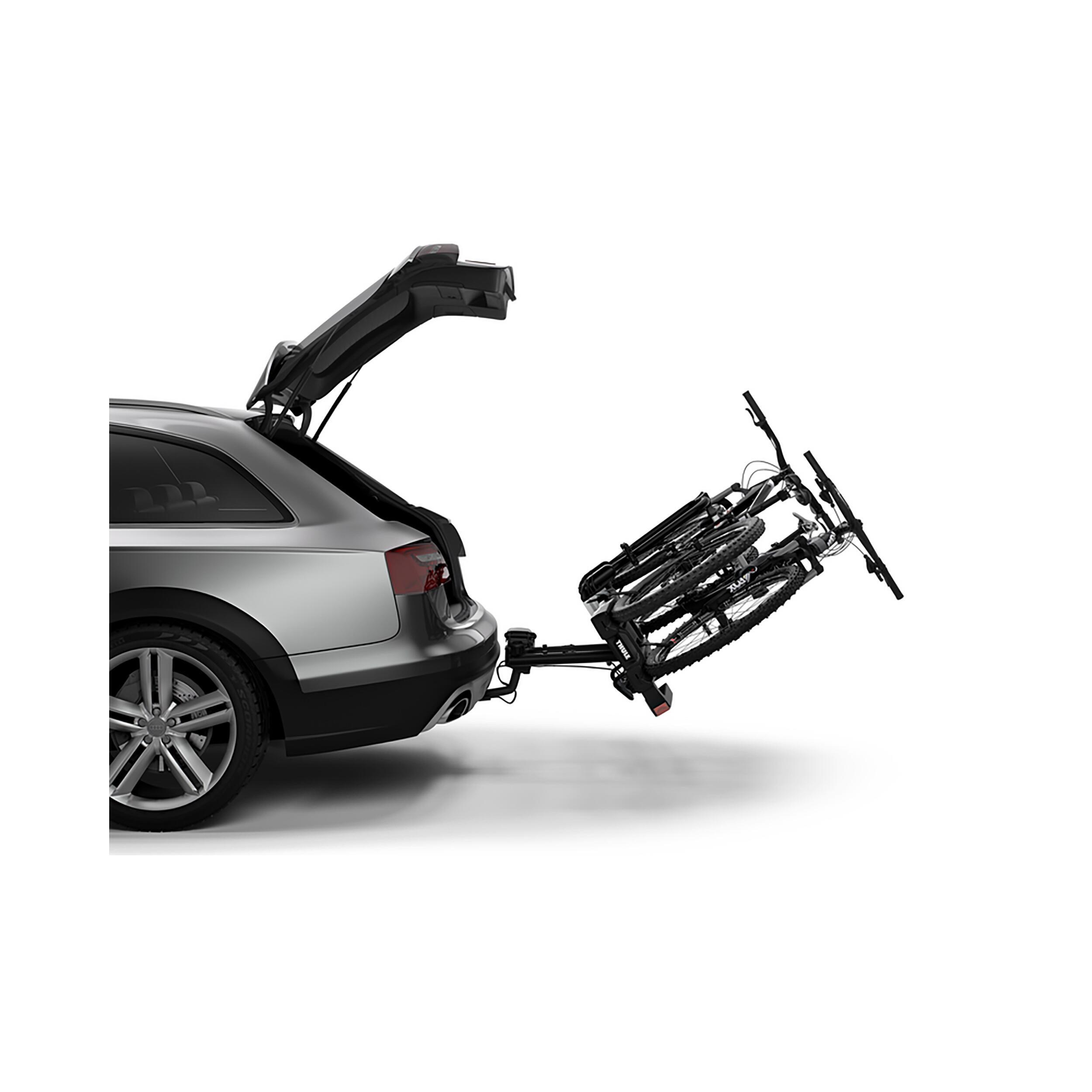 - Pédale de basculement pour un accès facile au coffre sans retirer les vélos