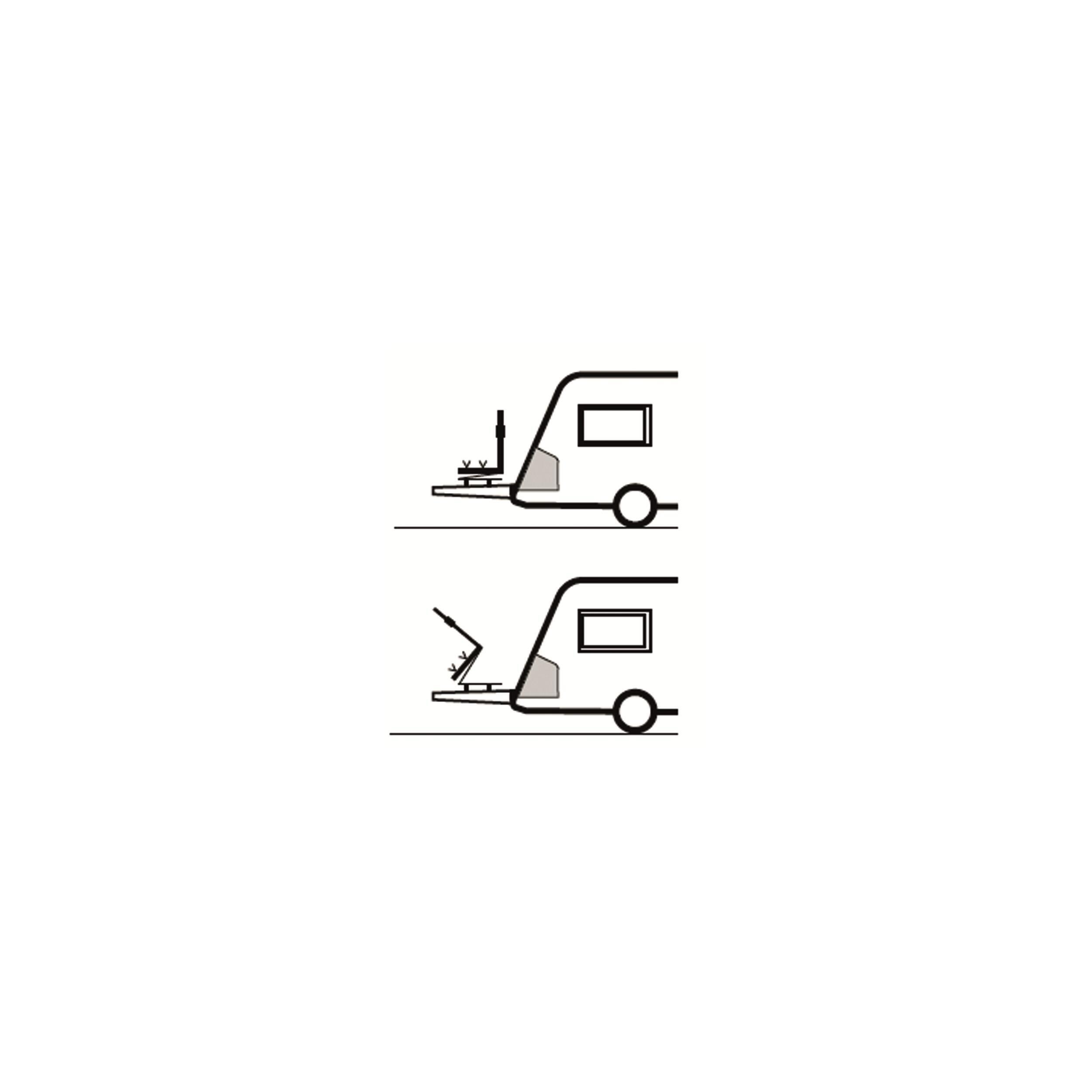 Ce porte-vélos se monte sur le timon de votre caravane et transporte 2 vélos en standard. Il bascule vers l'avant pour vous permettre d'accéder au coffre à gaz. La fixation des roues se fait par boucles à micro-clips, un système qui maintient vos vélos en place pendant le trajet. Selon le modèle, une extension permet de transporter un 3ème vélo.