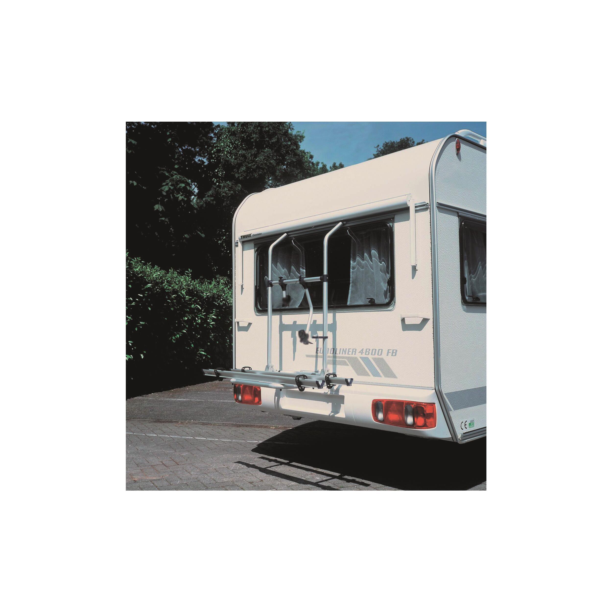 Porte-vélos sur timon pour 3 vélos en caravane, avec accès au coffre arrière