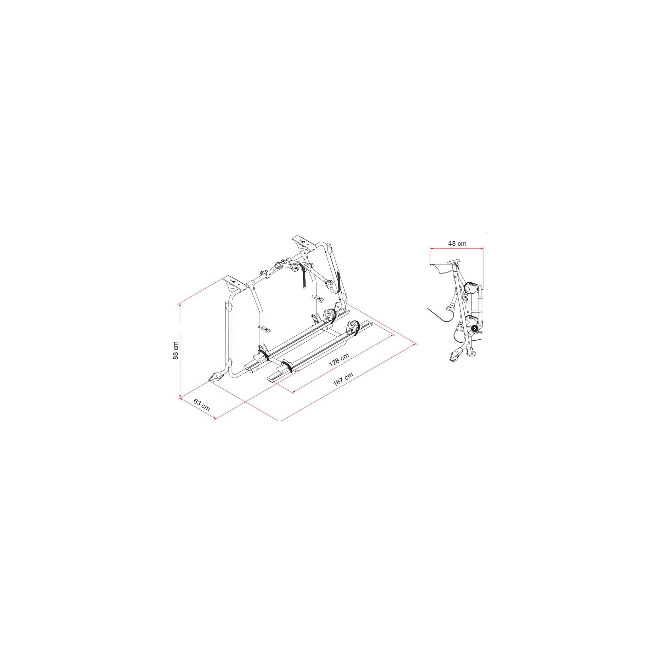 - Fixation sur la hauteur du hayon et ouverture possible sans les vélos sur la plateforme (sauf Carry-Bike VW T4 D pour mini-van Volkswagen à deux portes arrière)
